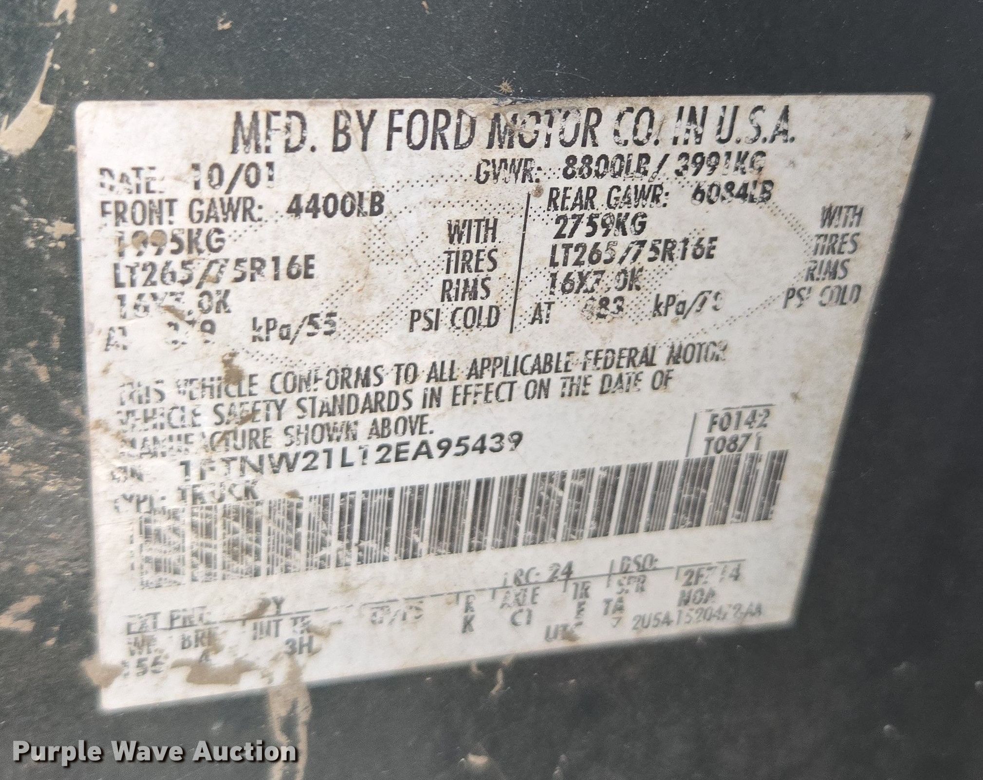 - VIN: 1FTNW21L12EA95439