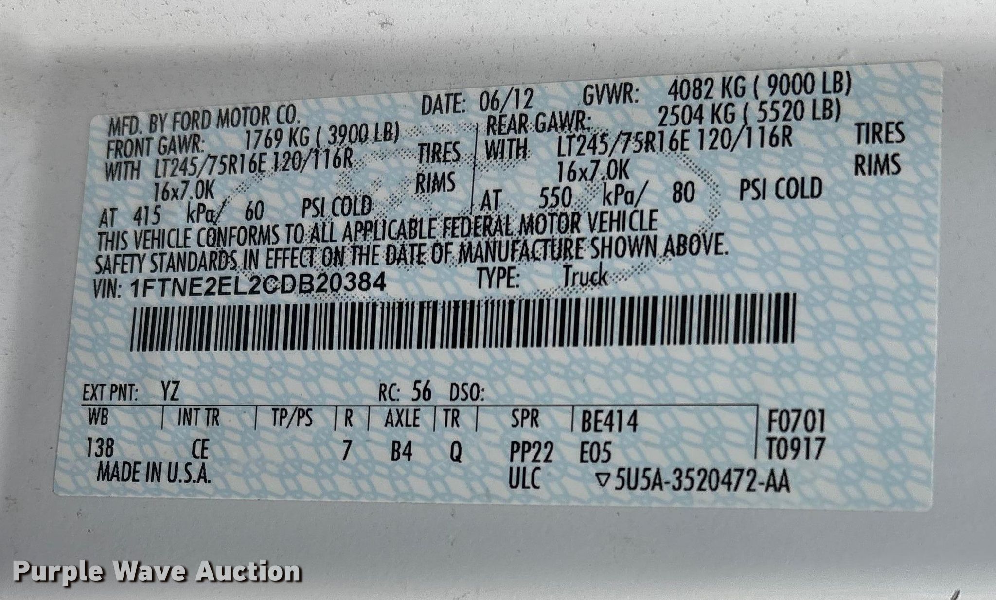 - VIN: 1FTNE2EL2CDB20384