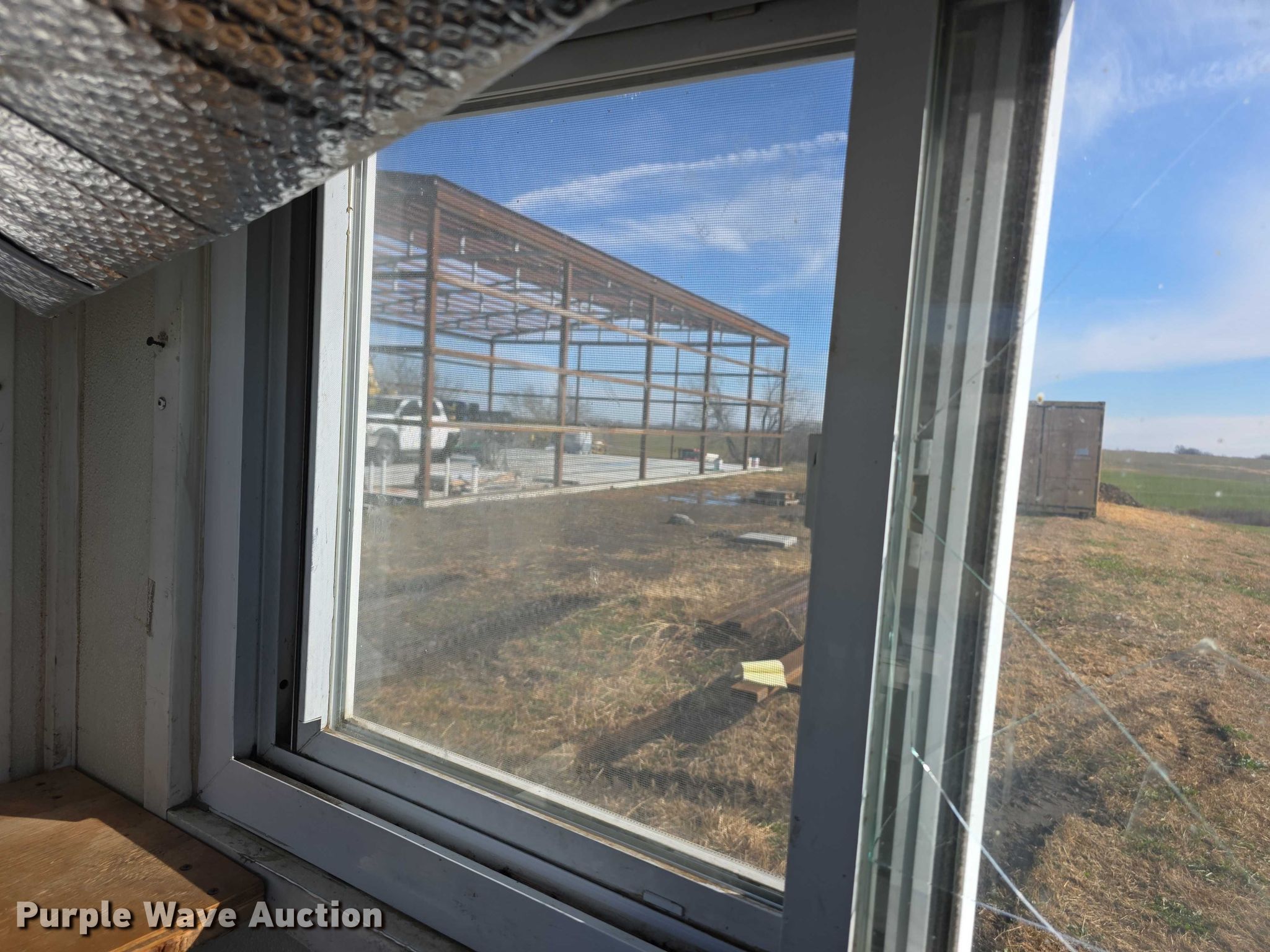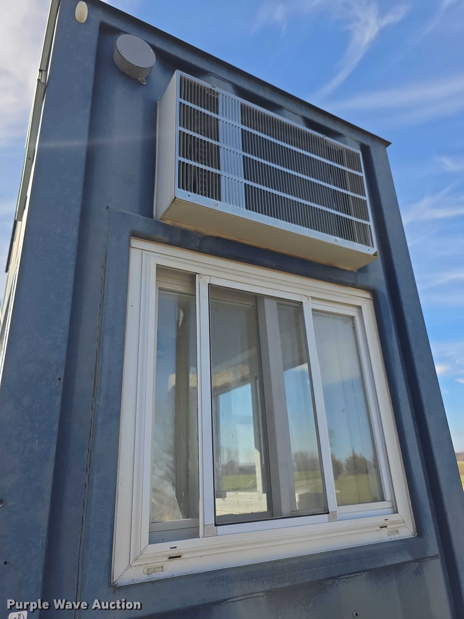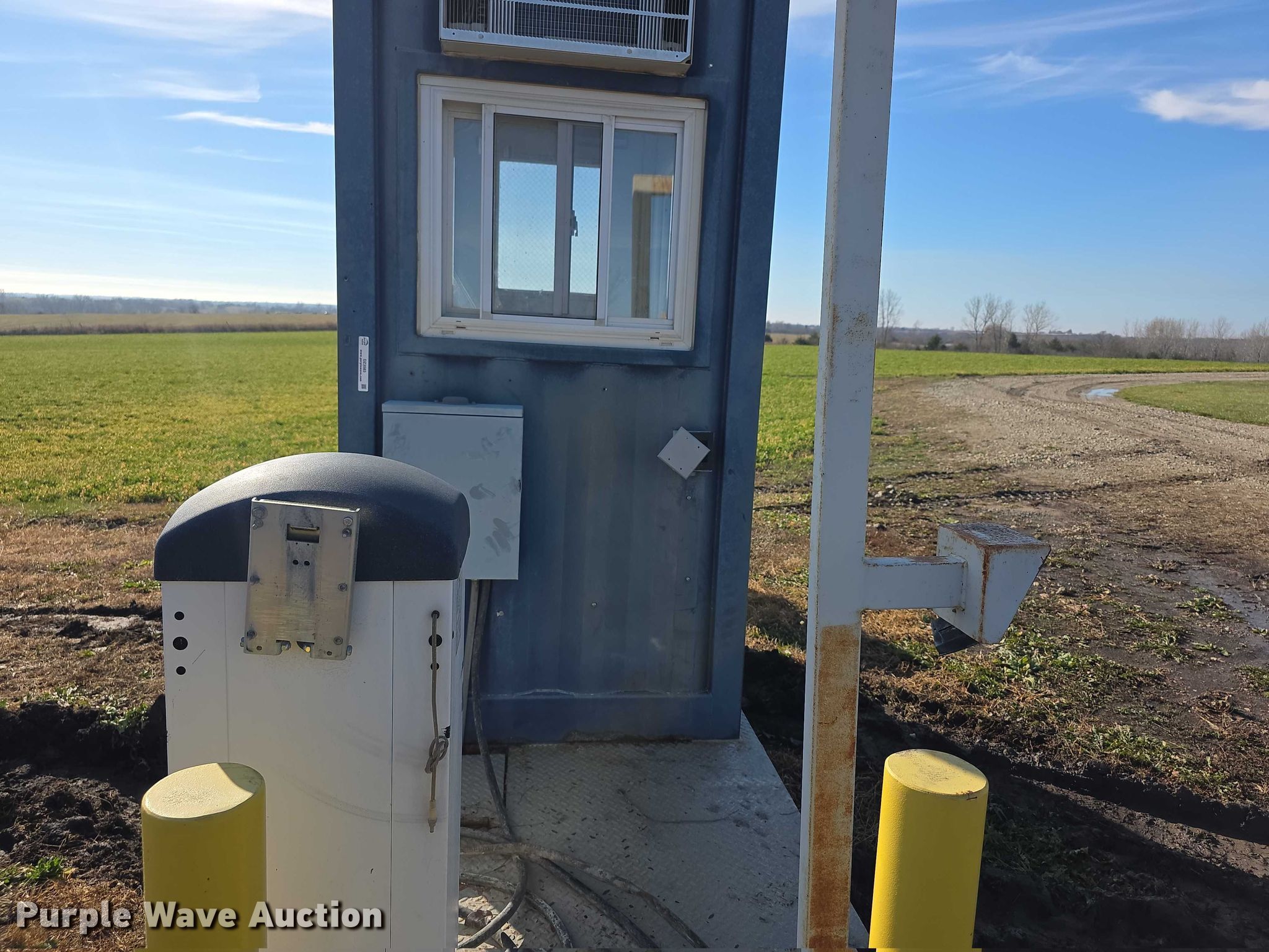 HySecurity StrongArmPark DC 14 guard shack. Shack 6' L x 4' W x 8' 6" H, Skid mounted 18' 6" L x 4' 6" W, Overall height 9' 2", A/C. Hoffman Brothers Welding. Hoyt, KS 66440