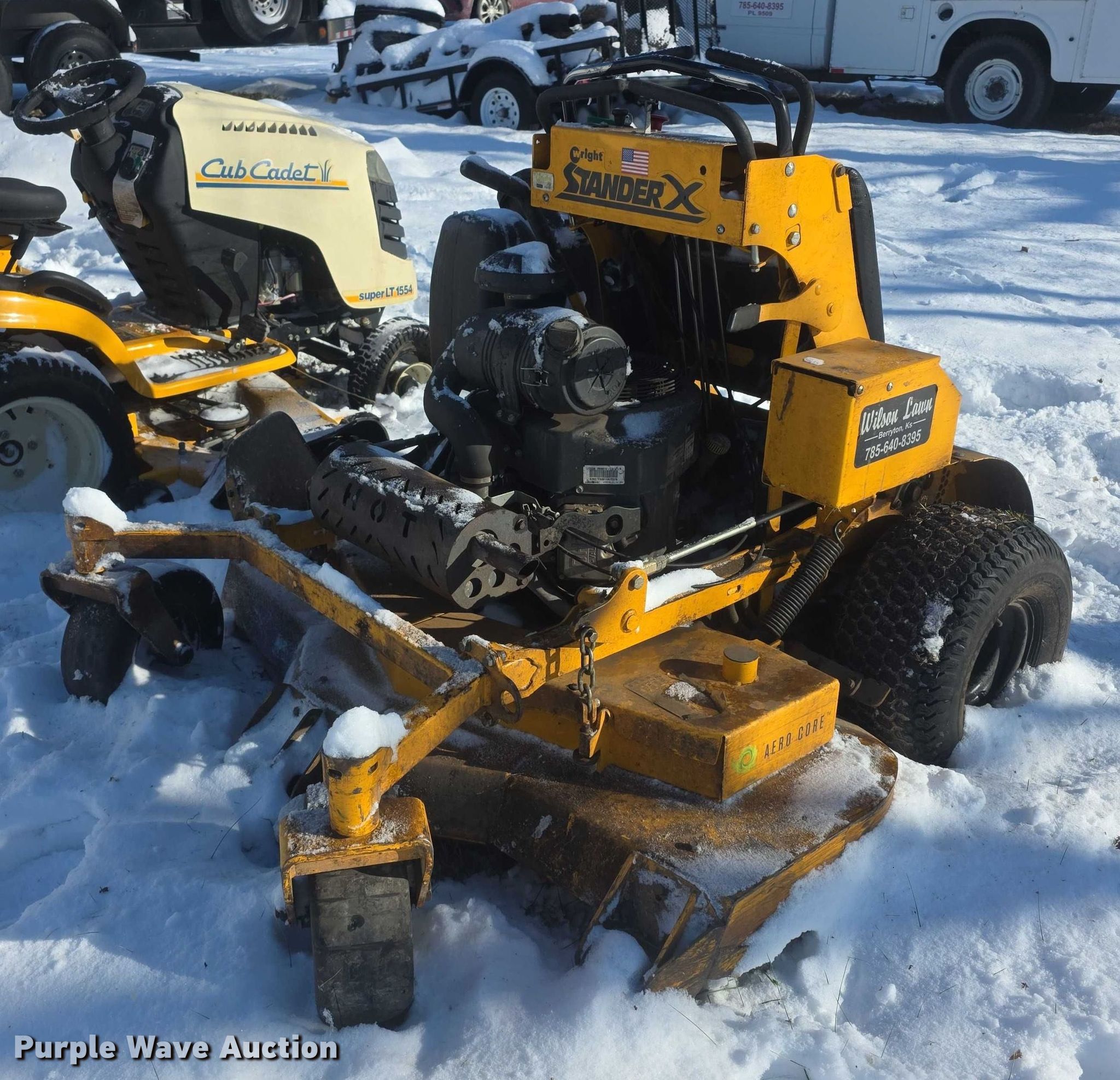 (3) lawn mowers. Wright Stander ZTR lawn mower. Hours: 950 on the meter. Engine Kawasaki, Hours: 950, Fuel type: Gas. Transmission Hydrostatic. Features Deck width: 54". Notes Parts maybe missing, Parts only, Tire off bead, Non-operational unit. Cub Cadet Super LT 1554 lawn mower Engine Kohler, Fuel type: Gas. Transmission Hydrostatic. Features Deck width: 54". Notes Tires flat, No key, Parts maybe missing, Parts only, Non-operational unit. Craftsman HD Garden lawn mower Engine Kohler Magnum, Fuel type: Gas, HP: 18. Transmission Hydrostatic, Deck width: 44". Notes Parts only, Flat tires, Parts maybe missing, Deck removed but included, Non-operational unit. Berryton, KS 66409