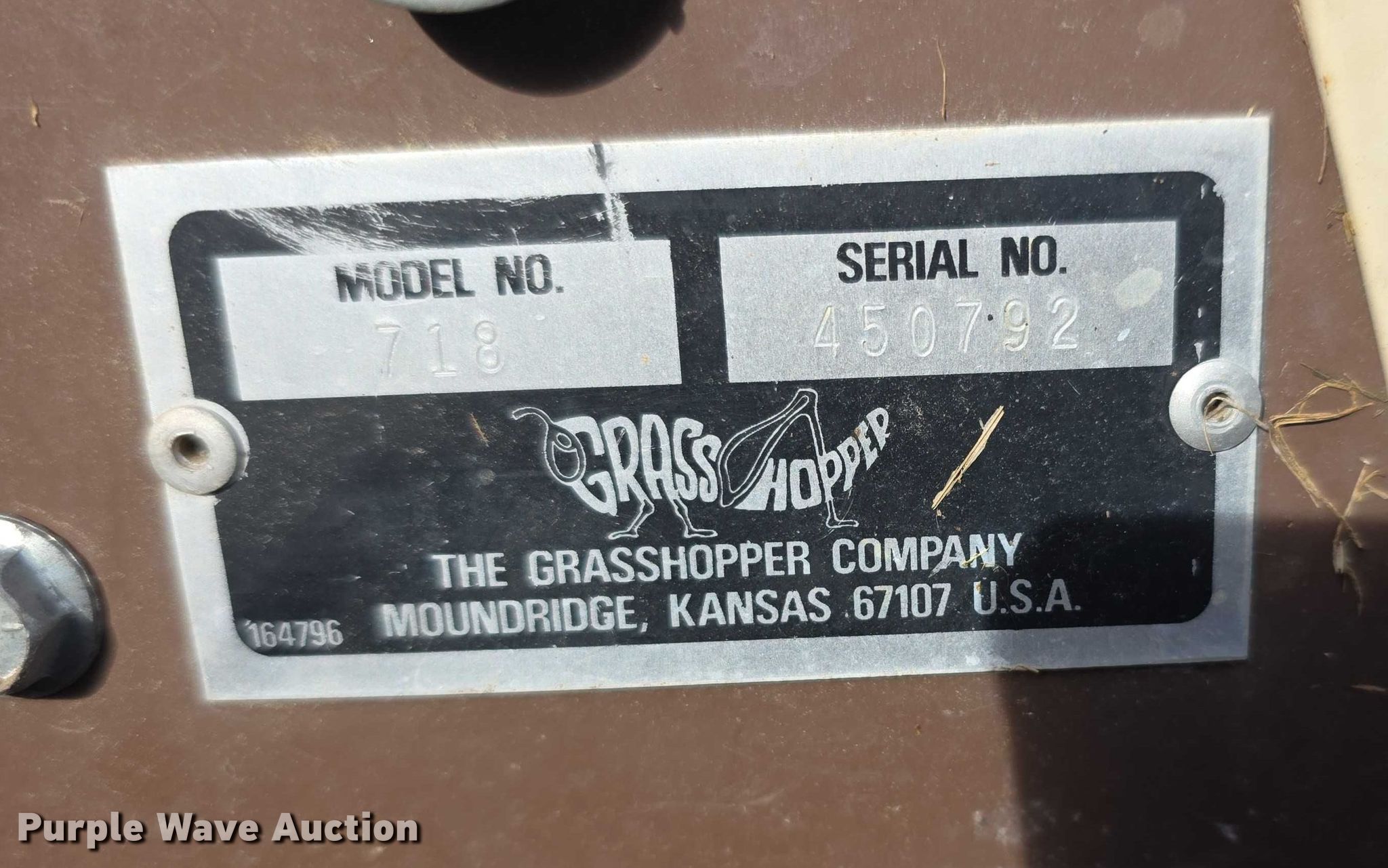 Purple Wave is selling a used Lawn Mower in Kansas. This item is a Grasshopper 713 ZTR lawn mower with the following: Hours: 1,241 on meter, Cutting width: 52", Serial: 450792
