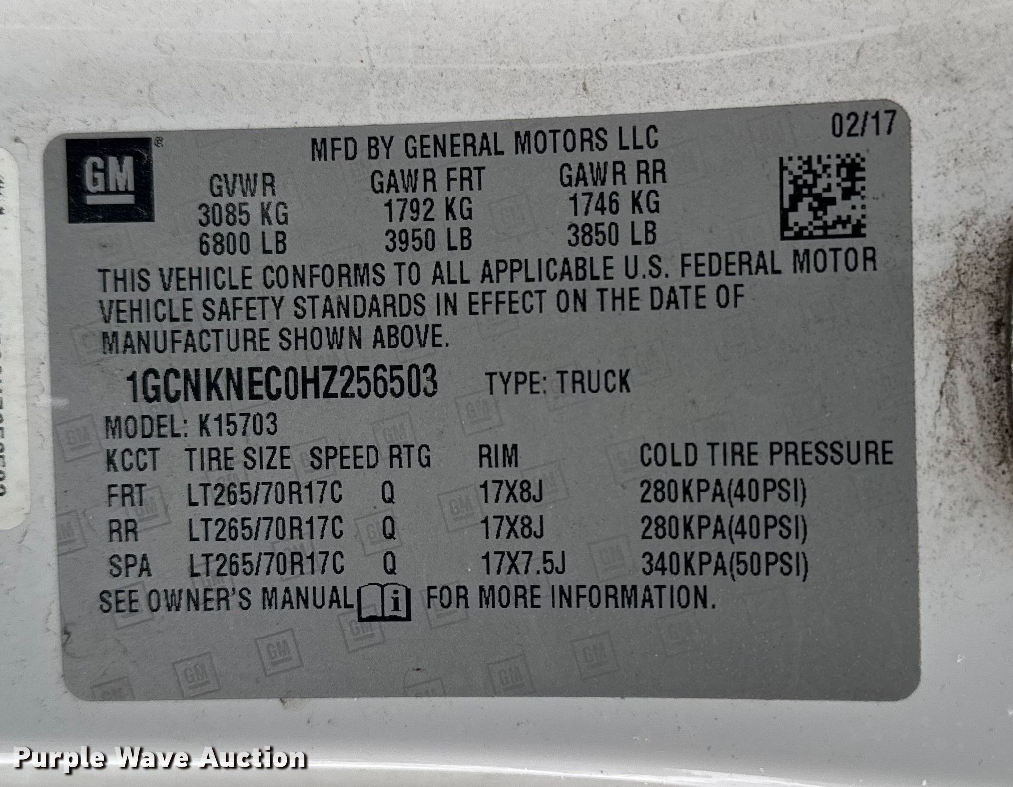 Purple Wave is selling a used 1/2 Ton Pickup or Van in Wisconsin. This item is a 2017 Chevrolet Silverado 1500 pickup truck with the following: Miles: 143,990 on odometer, Hours: 7,303 on meter, VIN: 1GCNKNEC0HZ256503