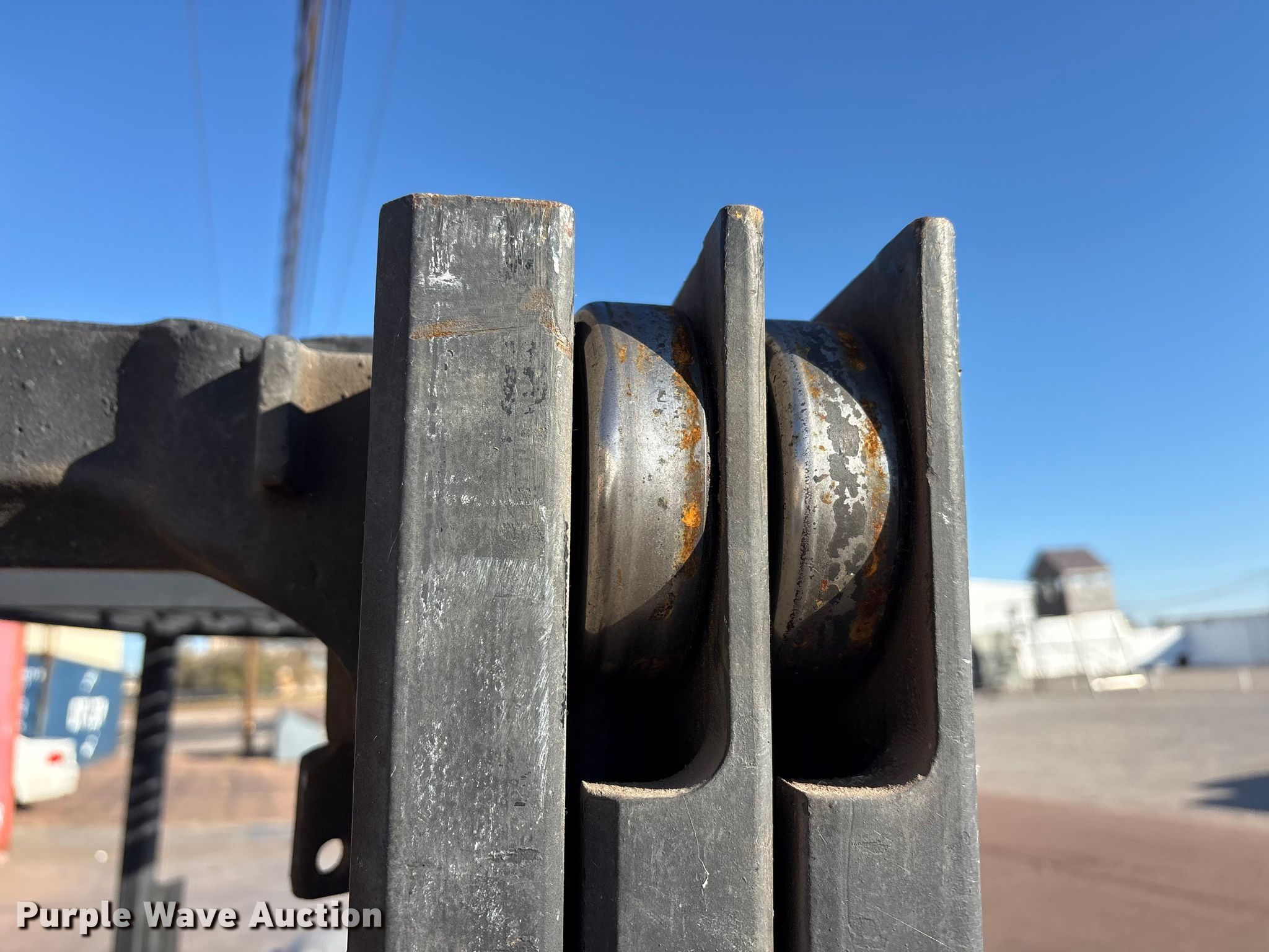 Yale GTP050TGNUAE084 forklift. Hours: 5,222 on meter, Serial: E177B21605V, Unit #: F946. Engine Cylinders: 3, Fuel type: LPG LP bottle: Not included. Transmission Powershift. Operators station OROPS. Features Maximum lift capacity: 5,000 lbs, Collapsed mast height: 82", Mast stages: 3, Side shift, Mast tilt. Tires Front: 700X12, Rear: 600X9, Solid. Notes Forks missing. Mill Creek Lumber & Supply. Altus, OK 73521
