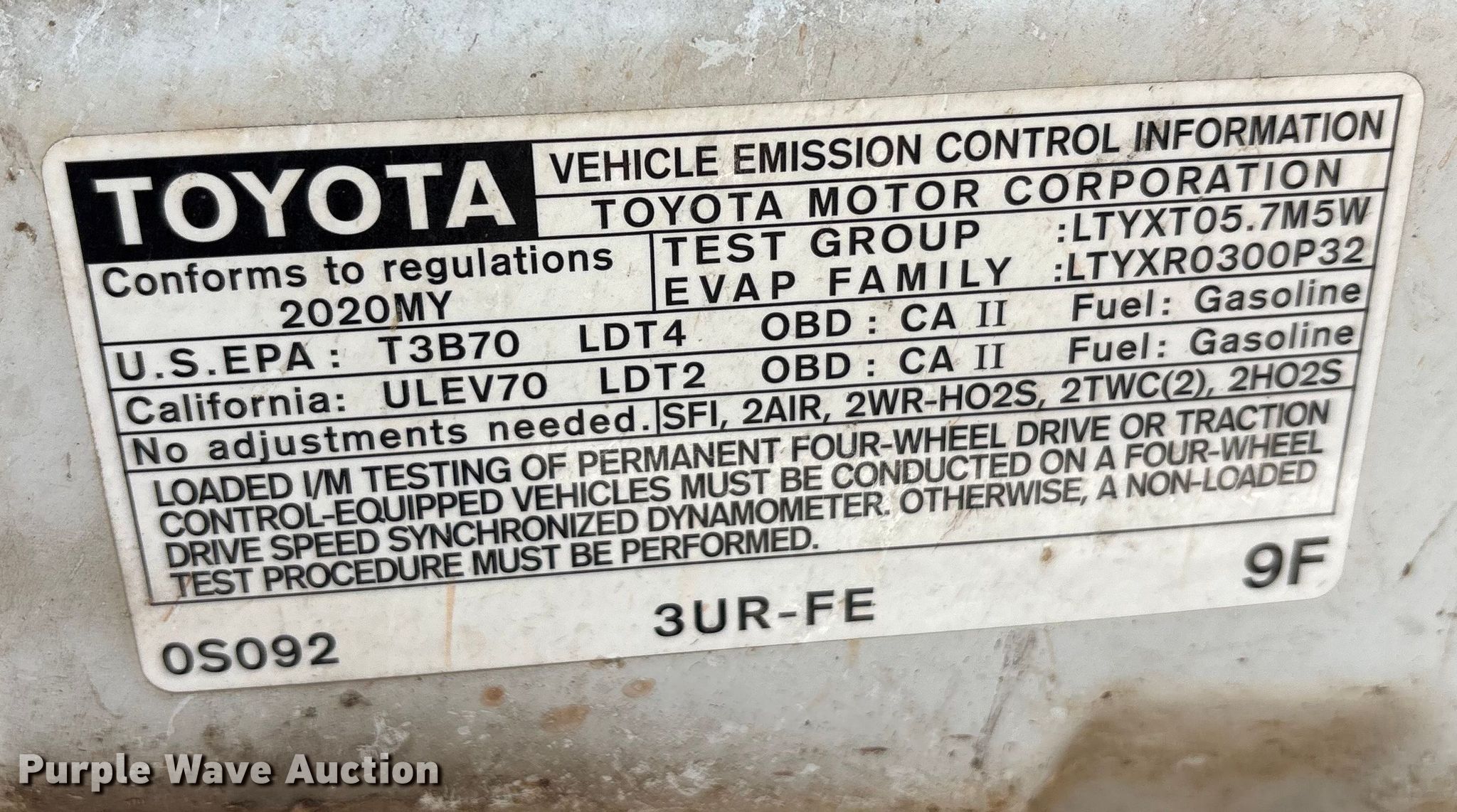 Take a look at this used 2020 Toyota Tundra CrewMax pickup truck being sold on December 30th, 2025 in the Tuesday December 30 Vehicles and Equipment Auction made by Toyota. Take a look at all of the item information below or take a look at similar auctions for Pickups and Vans.