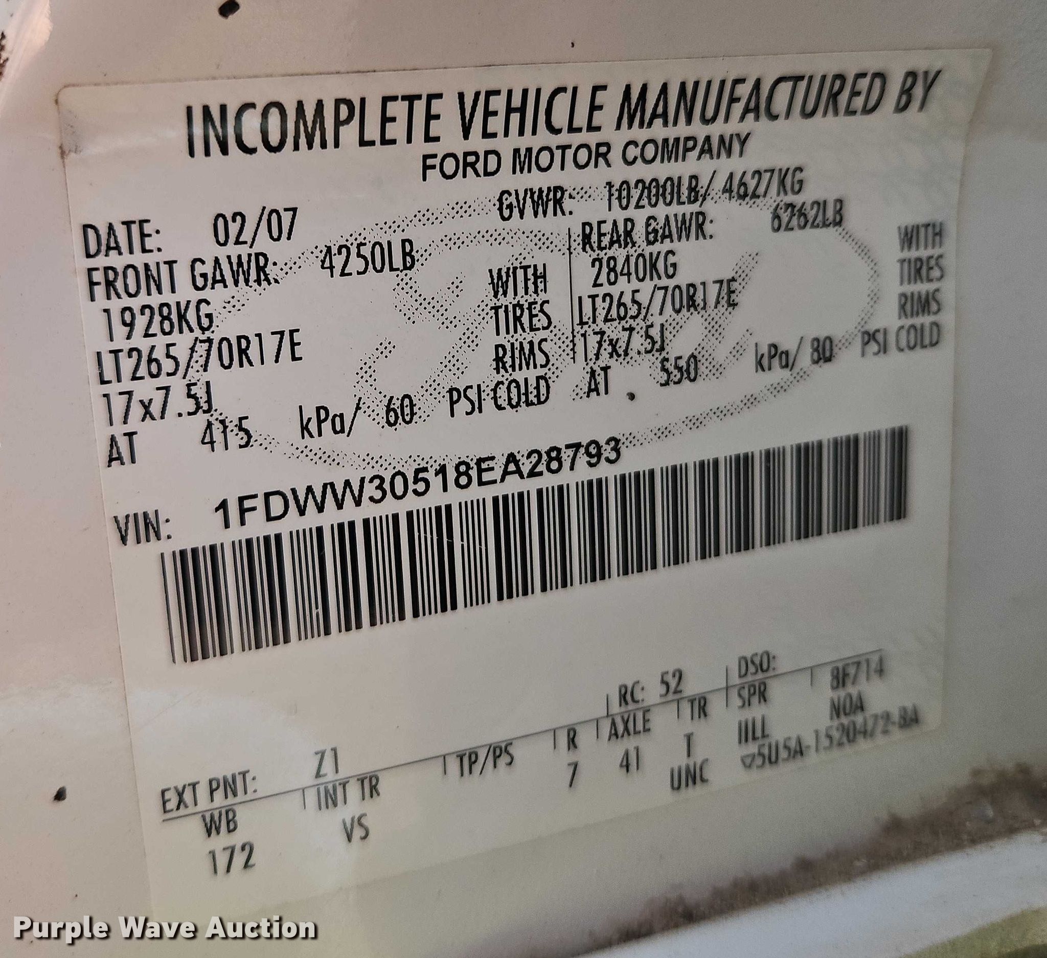 - VIN: 1FDWW30518EA28793