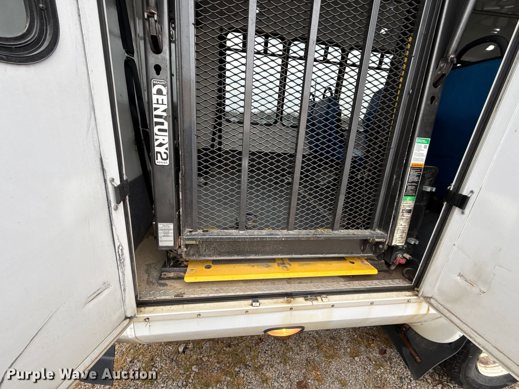 2013 Ford E450 Super Duty shuttle bus. Miles: 209,464 on odometer, VIN: 1FDFE4FS4DDA59784. Engine Displacement: 6.8L, Cylinders: 10, Fuel type: Gas. Transmission Automatic. Chassis Axles: Single, Suspension: Spring, Brakes: Hydraulic, GVWR: 14,500 lbs, Wheelbase: 158". Interior AC, Heat, Passengers: 10, Wheelchair lift. Tires Size: 235/85R16. Notes Dash warning indicator: Check engine, Roof leaks. Kansas title. Title distribution may be delayed up to 14 days from verification of funds. Independence, KS 67301
