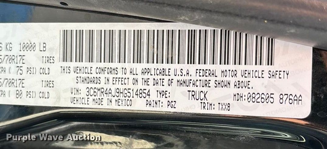 Purple Wave is selling a used 3/4 or 1 Ton Pickup or Van in Missouri. This item is a 2017 RAM 2500 pickup truck with the following: Miles: 190,224 on odometer, Hours: 1,824 on meter, VIN: 3C6MR4AJ9HG514854