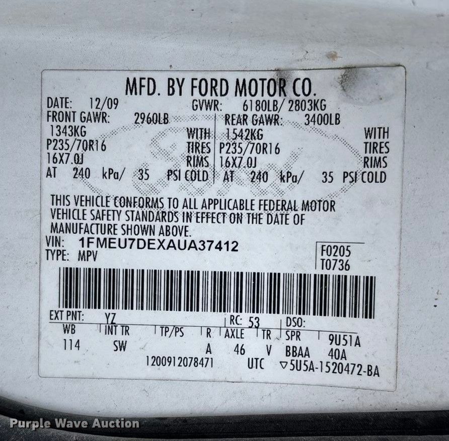 - VIN: 1FMEU7DEXAUA37412