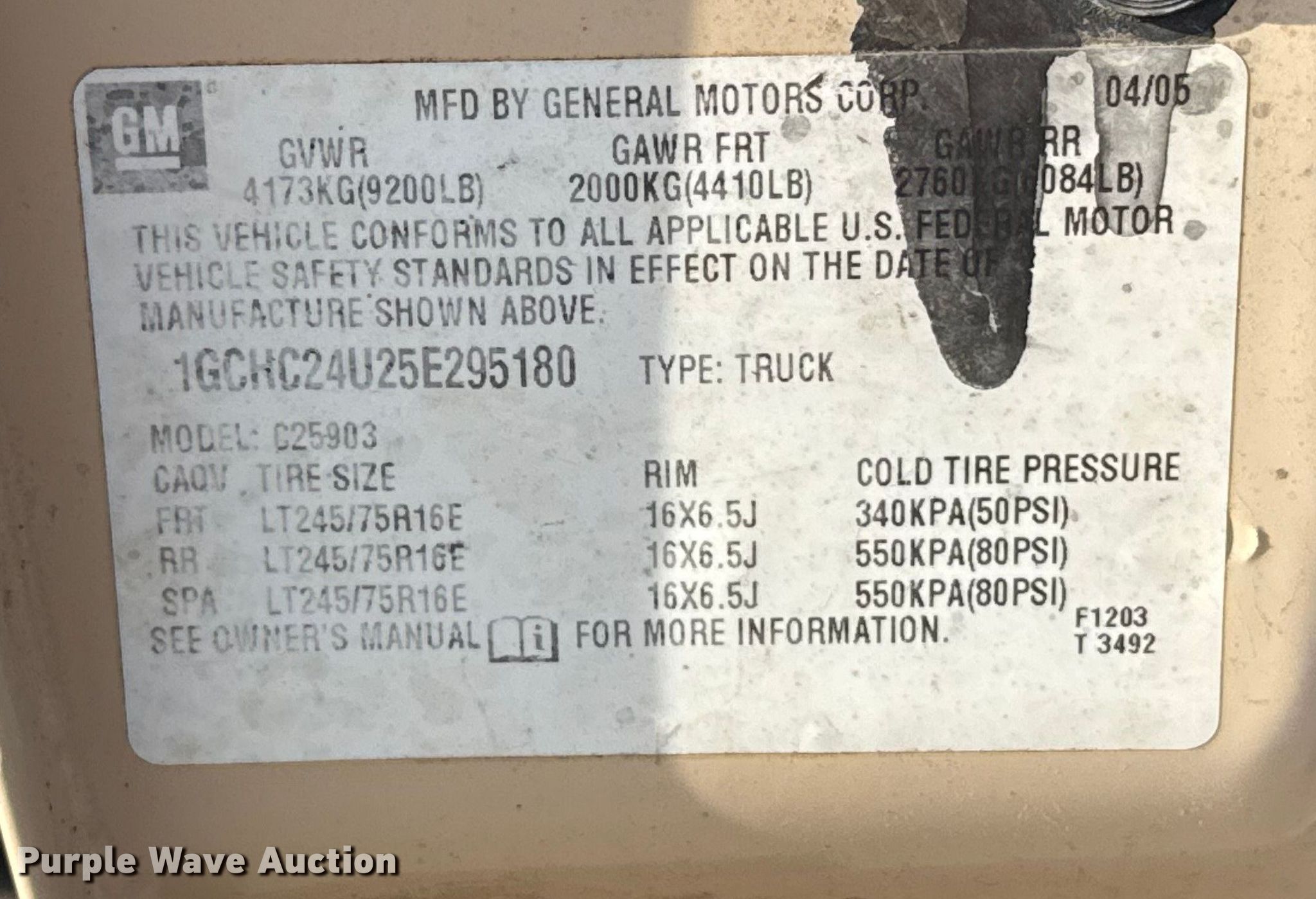 - VIN: 1GCHC24U25E295180