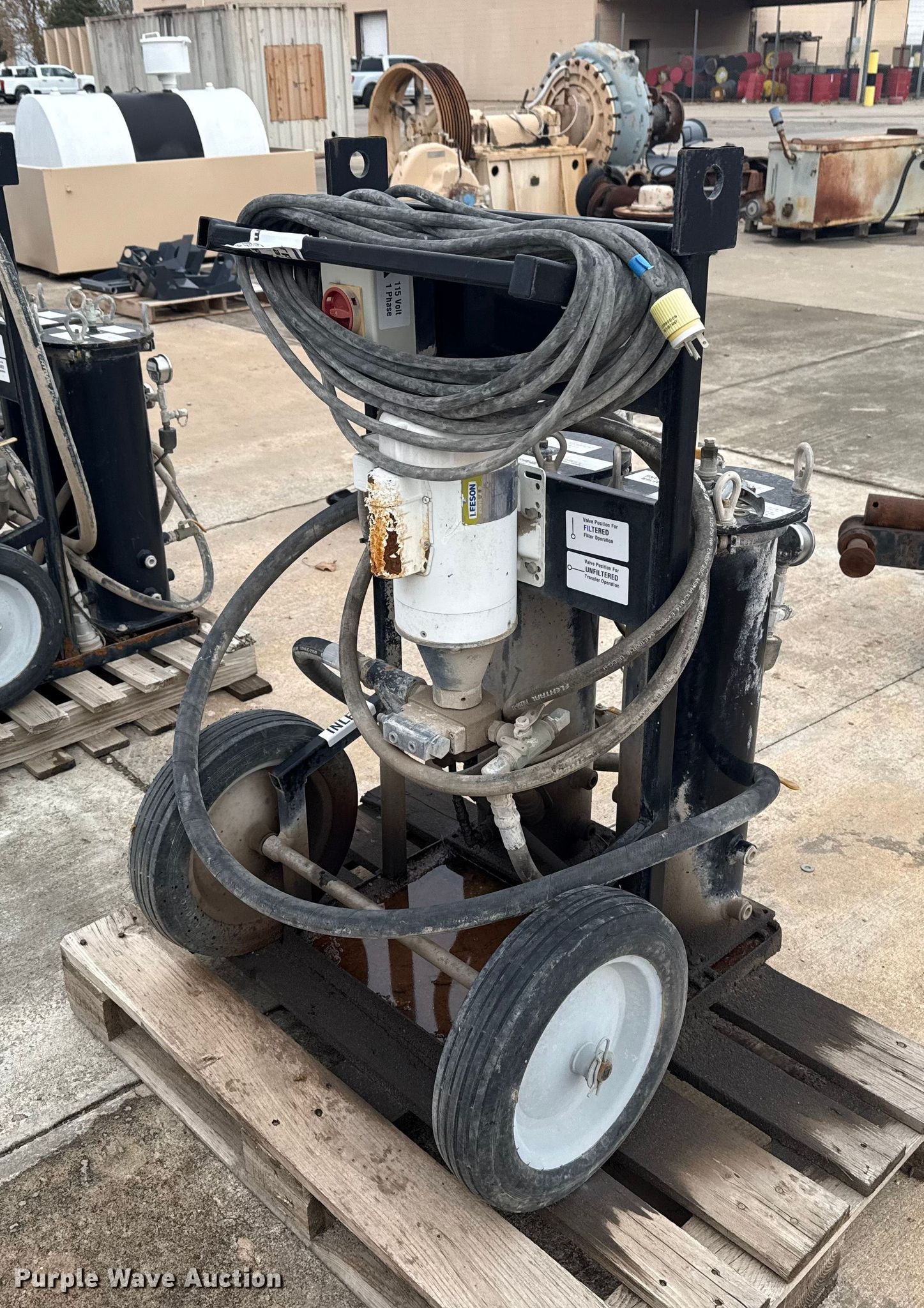 Purple Wave is selling a used Tools in Oklahoma. This item is a Des-Case TC-Cart differential fluid pump with the following: Leeson C6C17WK6M, HP: 1.5, Volts: 208-230