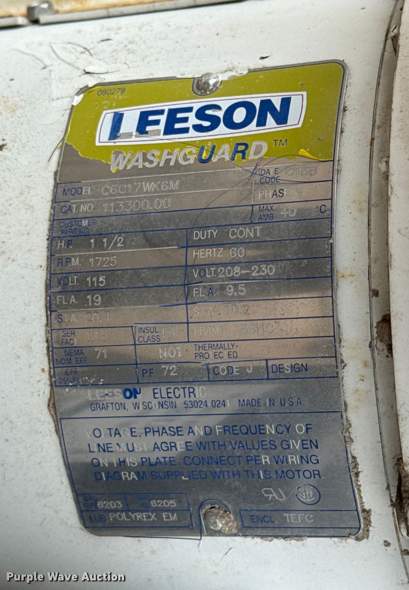 Des-Case TC-Cart differential fluid pump. Electric Motor. Leeson C6C17WK6M, HP: 1.5, Volts: 208-230. Tires Size: 16X4.00. Dolese Bros. Co. - Open Inspection Monday, December 29th. 5600 West Reno Avenue. Oklahoma City, OK 73127