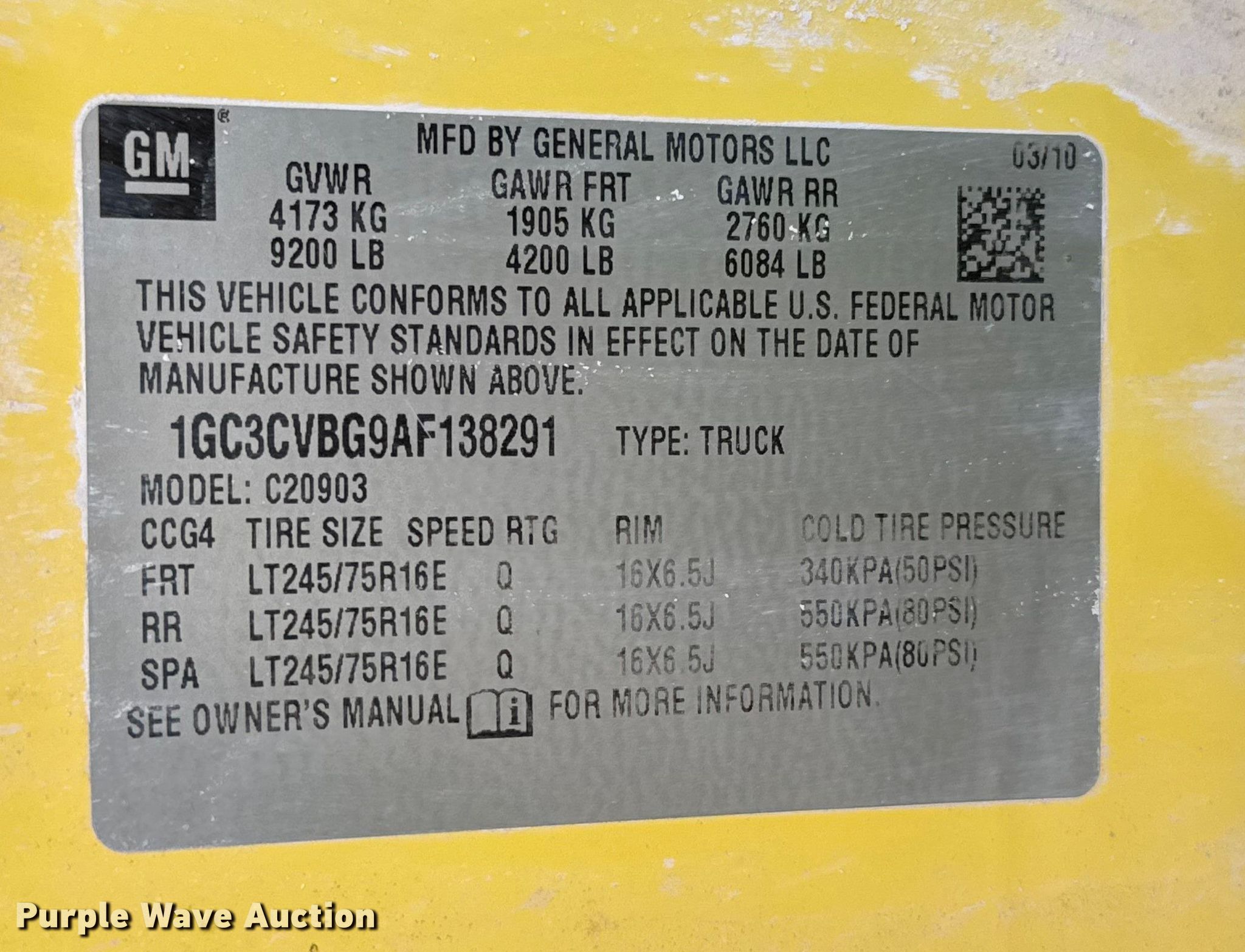 - VIN: 1GC3CVBG9AF138291