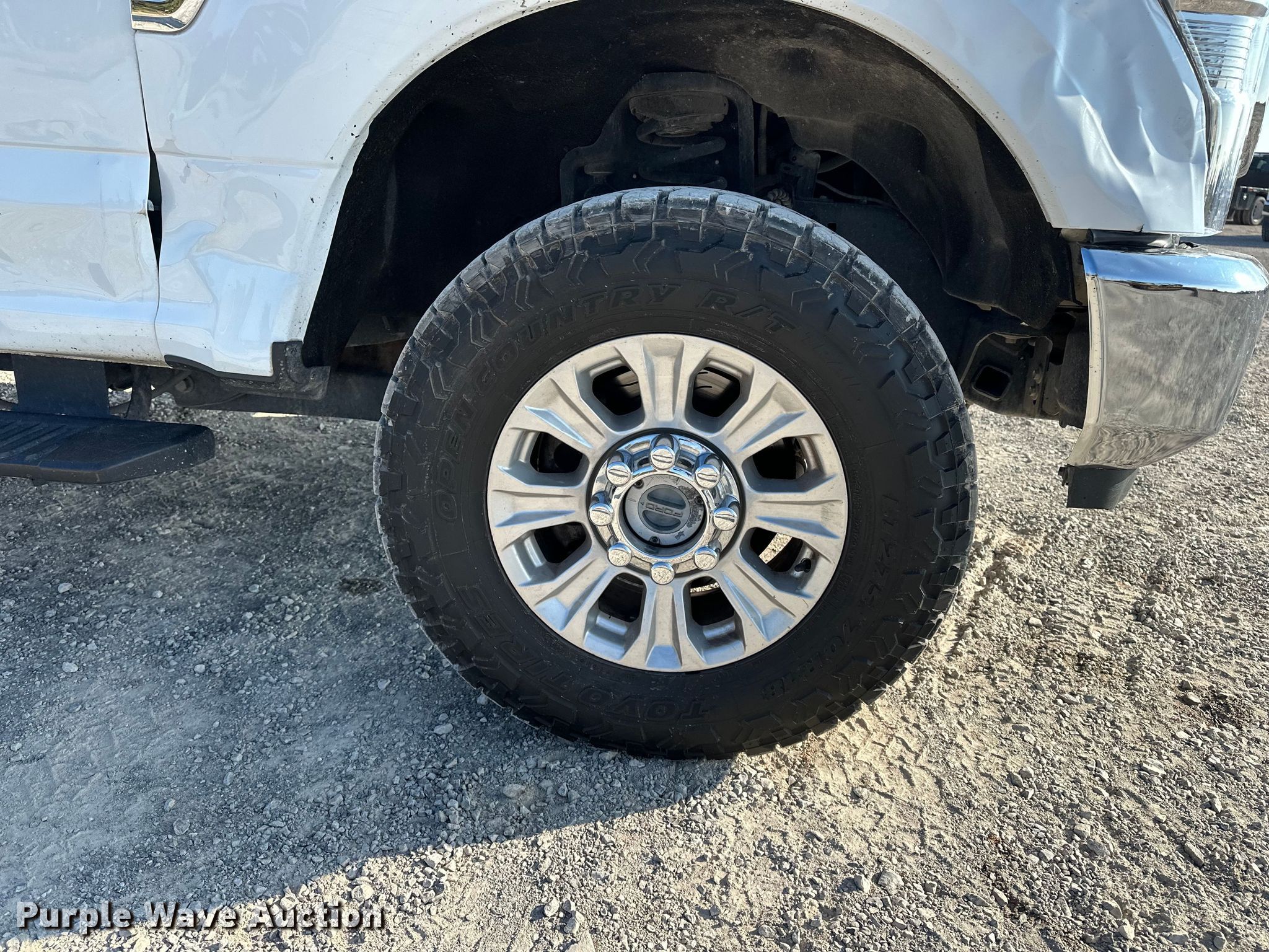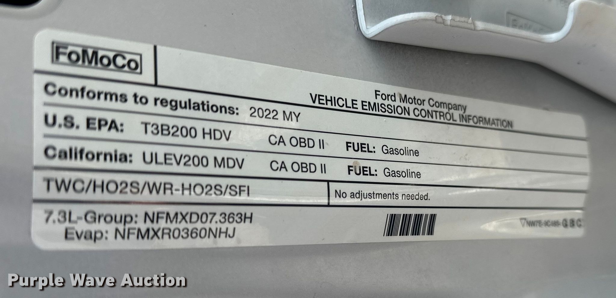 2022 Ford F250 Crew Cab pickup truck. Miles: 186,912 on odometer, VIN: 1FT7W2BN0NEF23949, Unit #: 111104. Engine Displacement: 7.3L, Cylinders: 8, Fuel type: Gas. Transmission Automatic, Four wheel drive. Interior AC, Heat, Power windows, Power locks, Cruise control, Backup camera, Brake controller. Features Hitch: Gooseneck. Tires Size: 275/70R18. Notes Dash warning indicator: Check engine, Windshield chipped or cracked. Oklahoma title. Title distribution may be delayed up to 45 days from verification of funds. Bennett Construction. Piedmont, OK 73078
