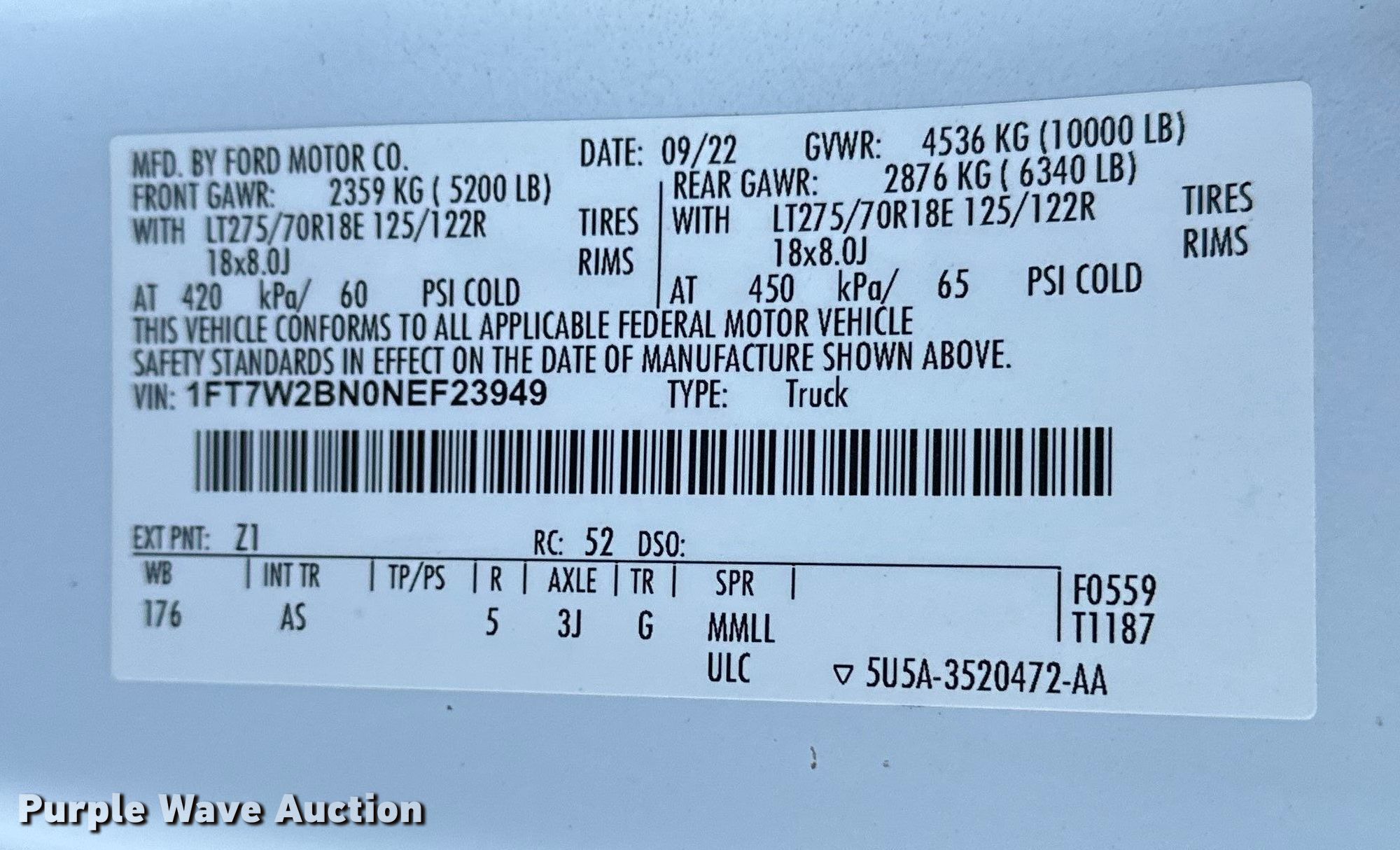 Purple Wave is selling a used 3/4 or 1 Ton Pickup or Van in Oklahoma. This item is a 2022 Ford F250 Crew Cab pickup truck with the following: Miles: 186,912 on odometer, VIN: 1FT7W2BN0NEF23949, Unit #: 111104