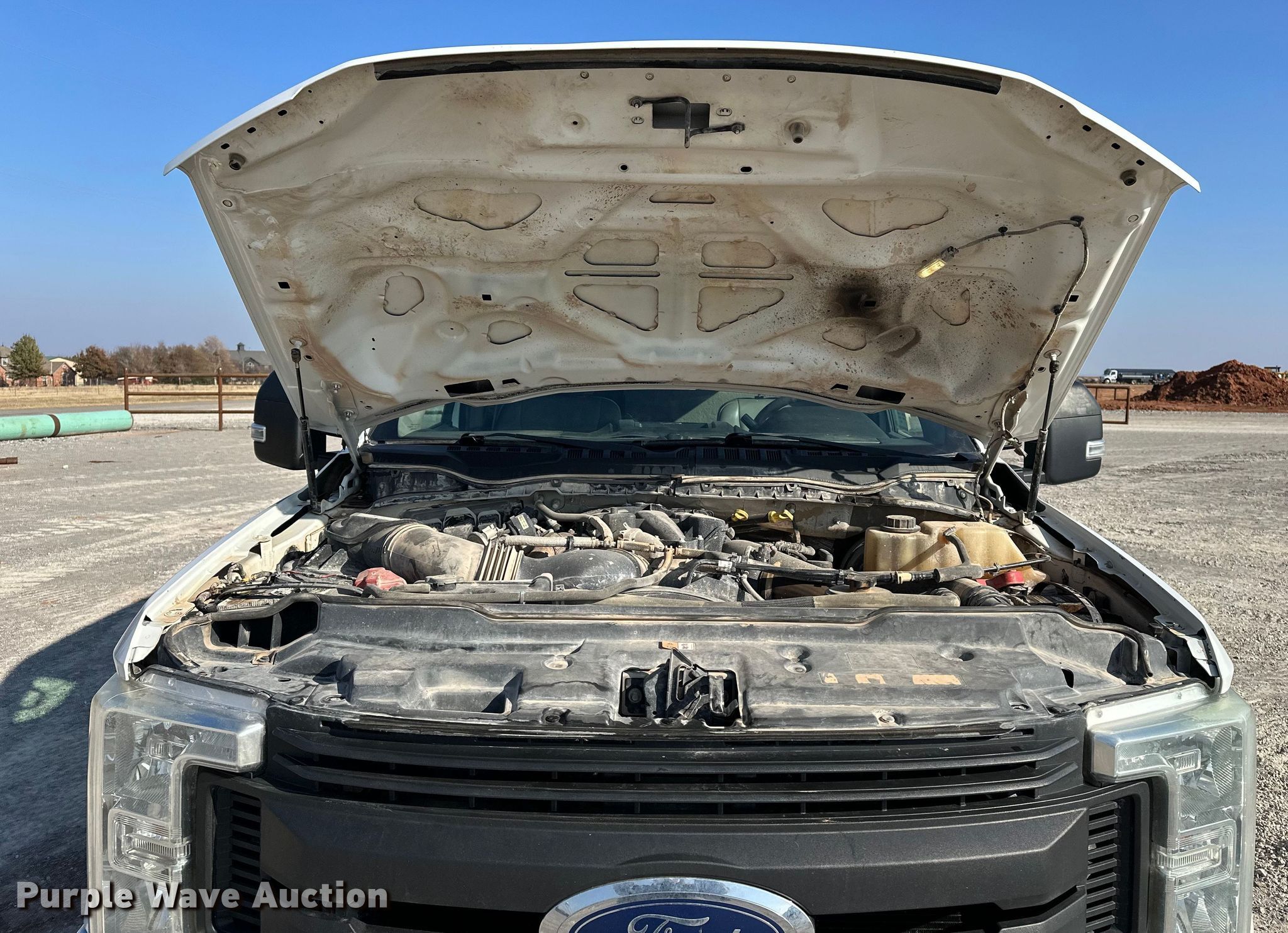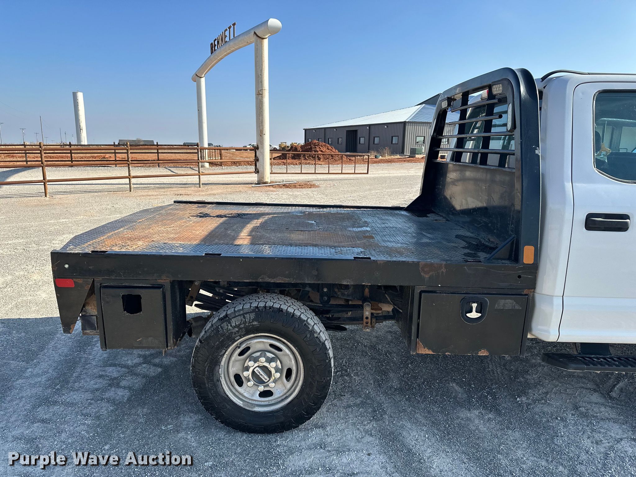 2018 Ford F250 Super Duty Crew Cab flatbed pickup truck. Miles: 172,466 on odometer, VIN: 1FT7W2BTXJEB09067, Unit #: 111041. Engine Displacement: 6.7L, Cylinders: 8, Fuel type: Diesel, HP: 440. Transmission Automatic, Four wheel drive. Interior AC, Heat, Heated mirrors, Power windows, Power locks, Cruise control, Backup camera, Brake controller. Features Bed Flatbed, CM 1500642, Serial: MA00215200, Length: 8' 6", Width: 84", Hitch: Gooseneck. Tires Size: 265/70R17. Notes Dash warning indicator: TPMS, Hail damage, DPF filter missing. Oklahoma title. Title has a lien that will be released following the close of the auction. Title distribution may be delayed up to 30 days from verification of funds. Bennett Construction. Piedmont, OK 73078