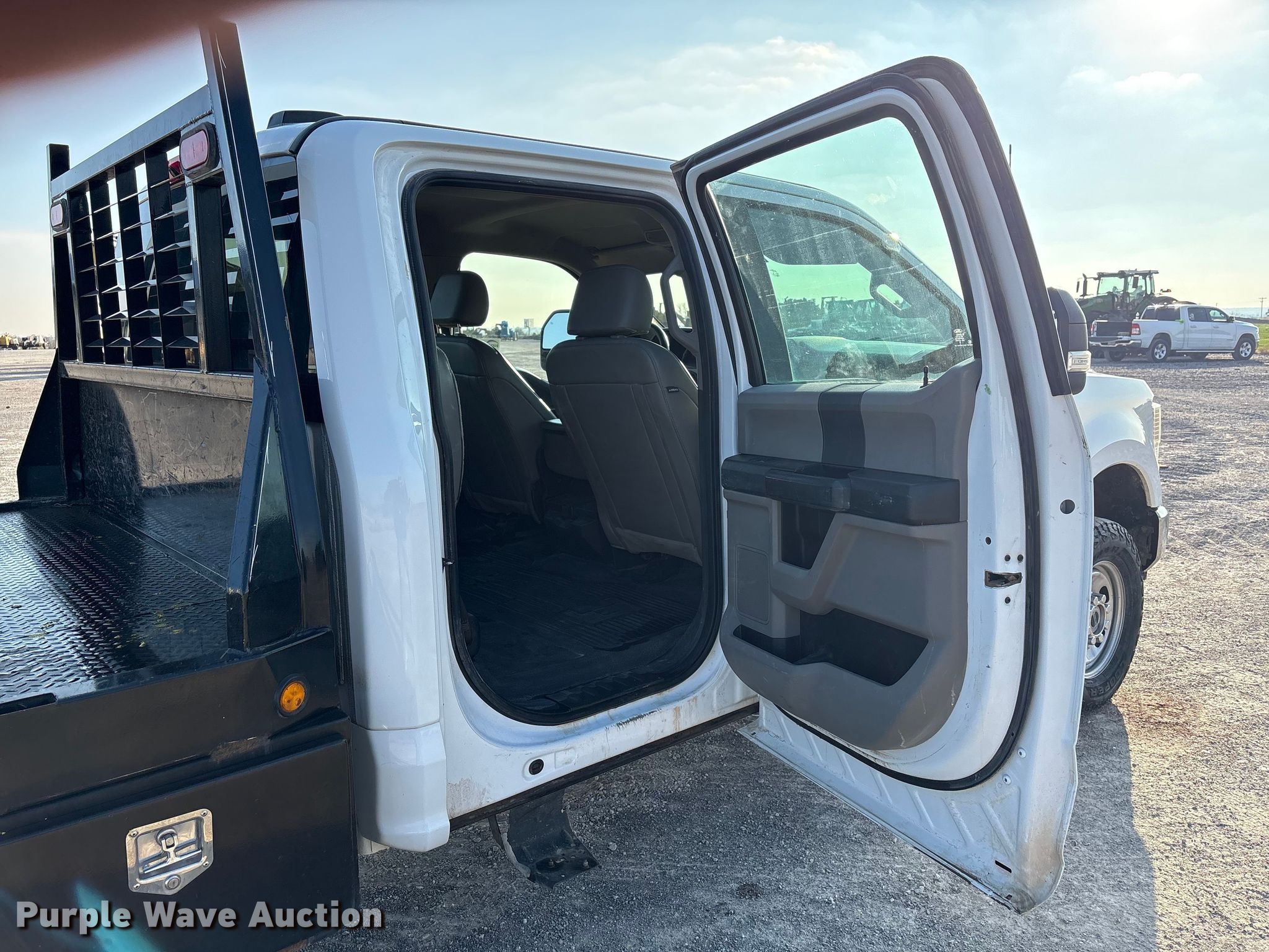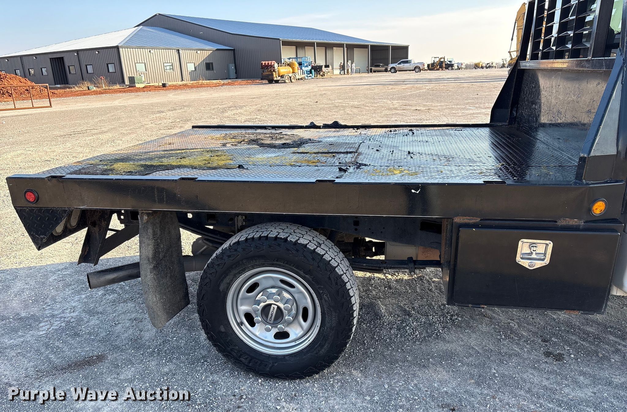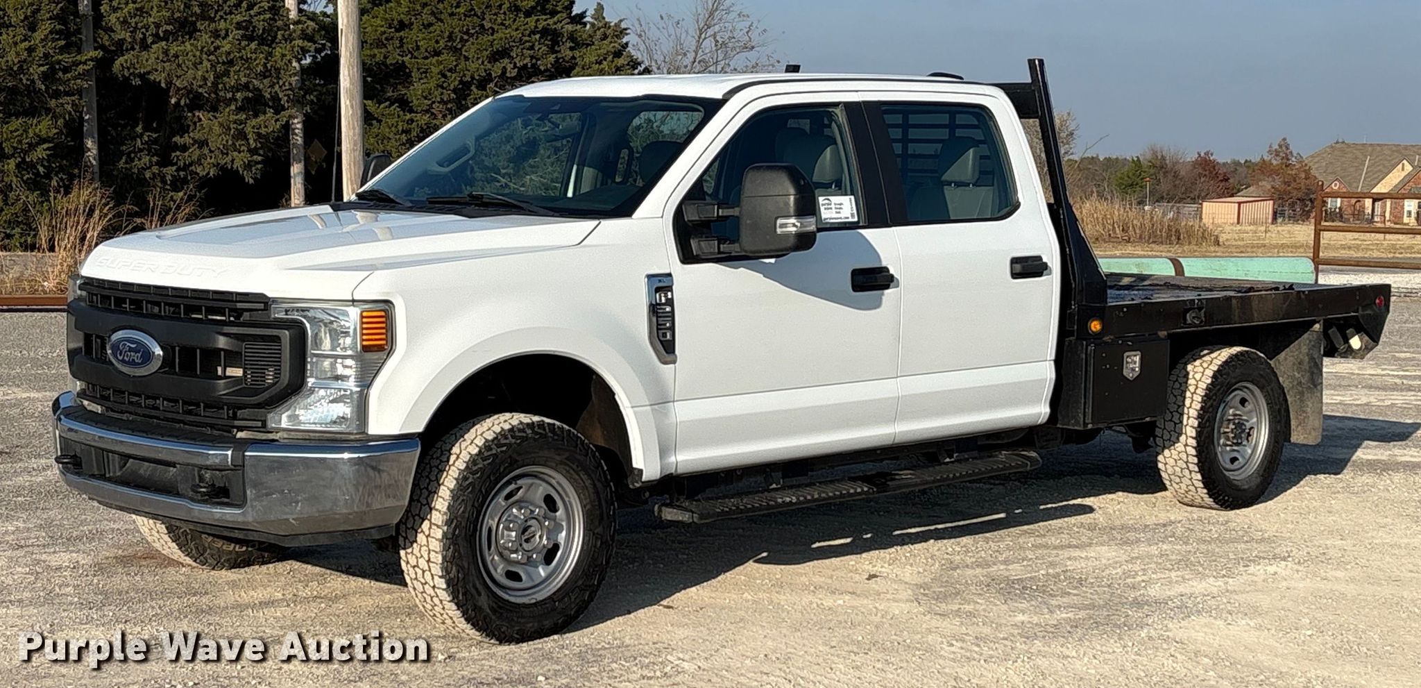 2022 Ford F250 Super Duty pickup truck. Miles: 115,120 on odometer, VIN: 1FT7W2BN2NED45610, Unit #: 111086. Engine Displacement: 7.3L, Cylinders: 8, Fuel type: Gas. Transmission Automatic. Interior AC, Heat, Heated mirrors, Power windows, Power locks, Cruise control, Backup camera, Auxiliary controls, Brake controller. Features Bed Flatbed, J&I MFG, Length: 8' 6", Width: 82", Hitch: Gooseneck. Tires Size: 265/70 R17. Notes Dash warning indicator: Check engine, TPMS, Hail damage. Oklahoma title. Title distribution may be delayed up to 45 days from verification of funds. Bennett Construction. Piedmont, OK 73078
