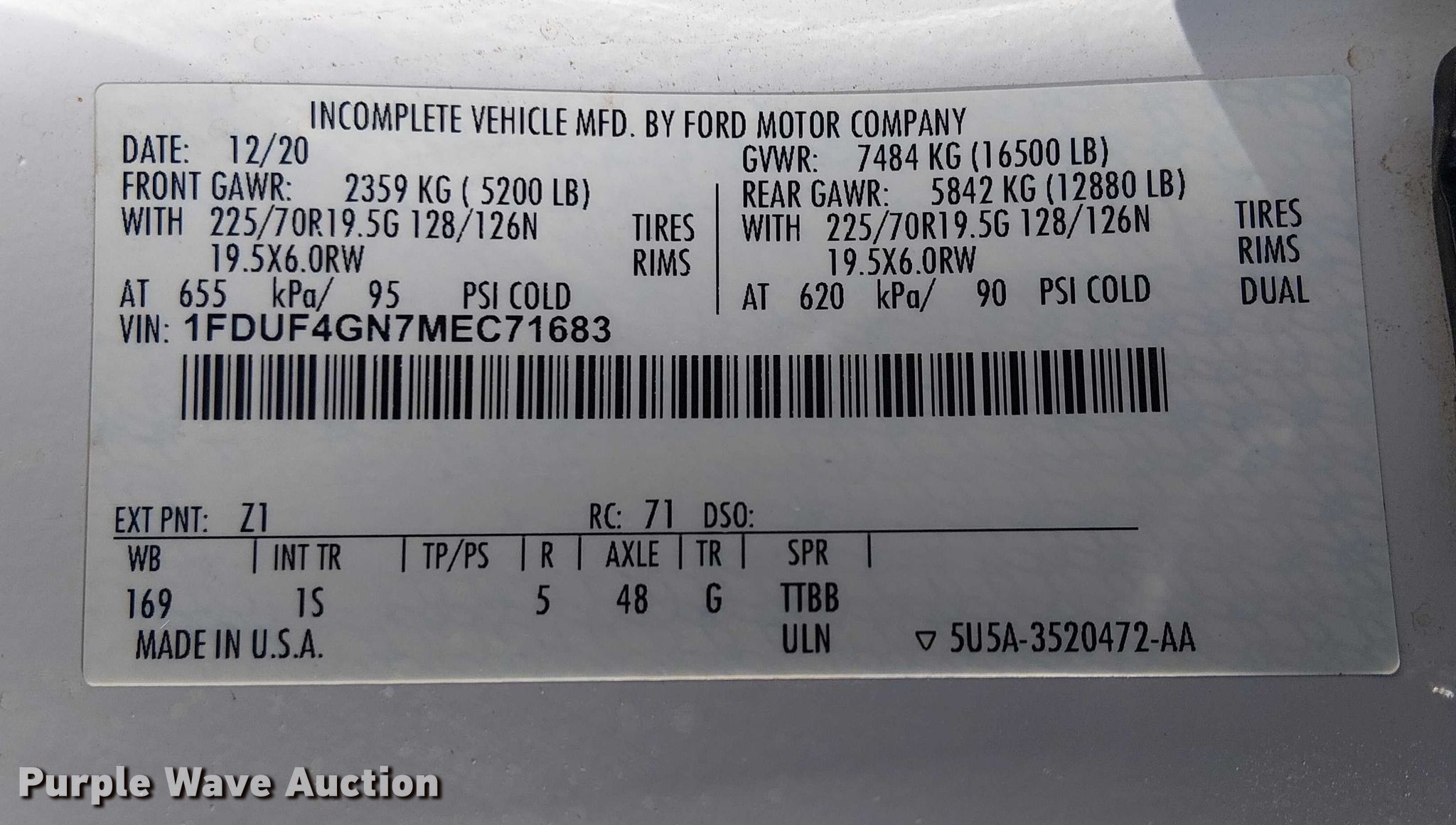 2021 Ford F450 Super Duty flatbed truck. Miles: 57,451 on odometer, Hours: 5,411 on meter, VIN: 1FDUF4GN7MEC71683. Engine Displacement: 7.3L, Cylinders: 8, Fuel type: Gas. Transmission Automatic. Chassis Axles: Single, Suspension: Spring, Brakes: Hydraulic, GVWR: 16,500 lbs, Wheelbase: 169". Interior AC, Heat, Heated mirrors, Power windows, Power locks, Cruise control, Backup camera, Auxiliary controls, Brake controller. Features Bed Flatbed, Length: 12', Width: 8'. Tires Size: 245/70R19.5. Arizona title. Title distribution may be delayed up to 14 days from verification of funds. UUCON. Glendale, AZ 85303