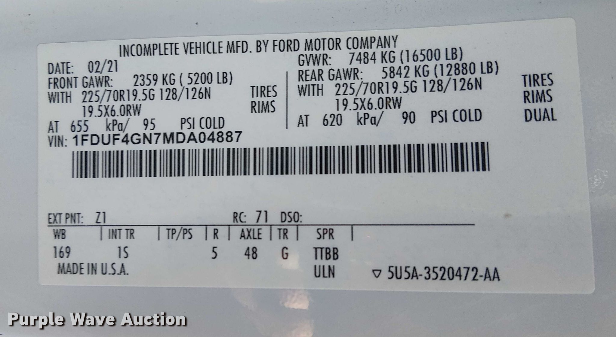 Purple Wave is selling a used Truck Chassis in Arizona. This item is a 2021 Ford F450 Super Duty truck cab and chassis with the following: Miles: Unknown, VIN: 1FDUF4GN7MDA04887