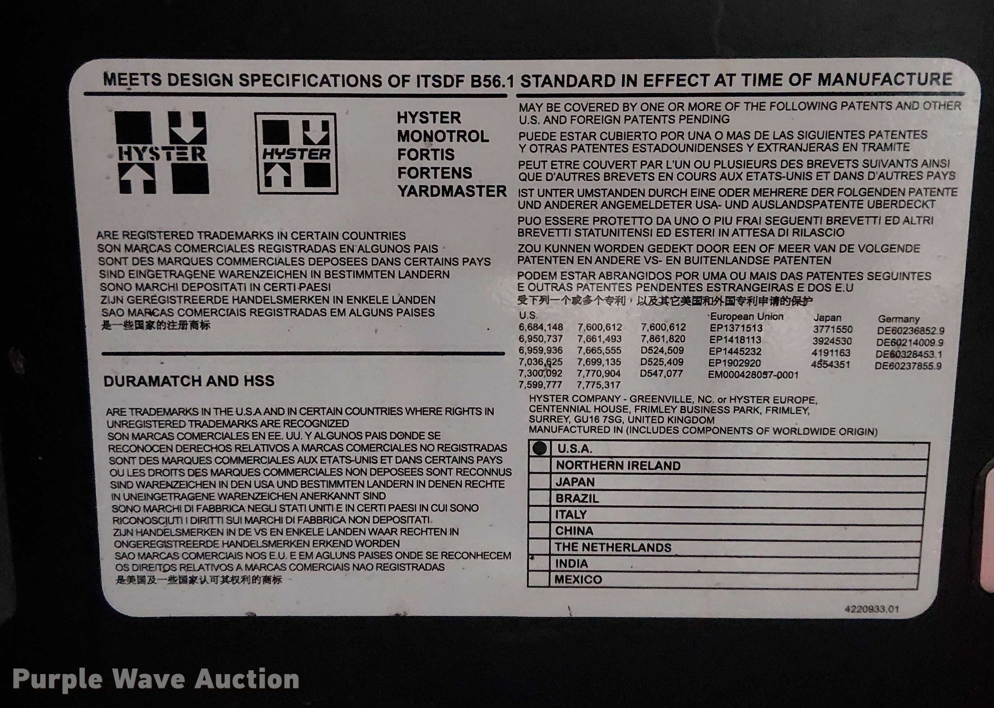 Purple Wave is selling a used Warehouse Forklift in Arizona. This item is a 2023 Hyster N35ZR3-16.25 reach truck with the following: Hours: 996 on meter, Serial: E264N03906X