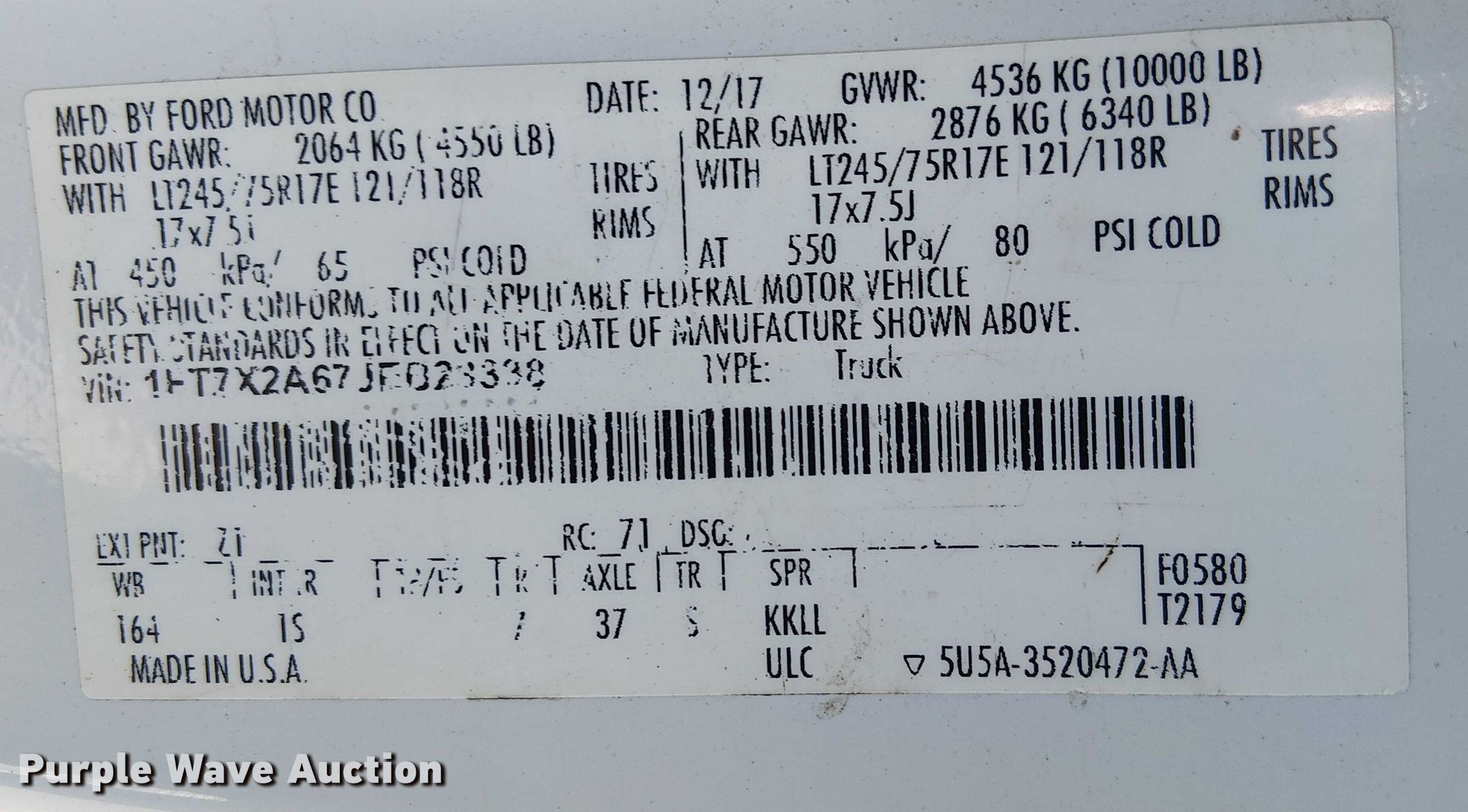 Purple Wave is selling a used 3/4 or 1 Ton Pickup or Van in Arizona. This item is a 2018 Ford F250 Super Duty SuperCab pickup truck with the following: Miles: 169,747 on odometer, Hours: 9,386 on meter, VIN: 1FT7X2A67JEB23338