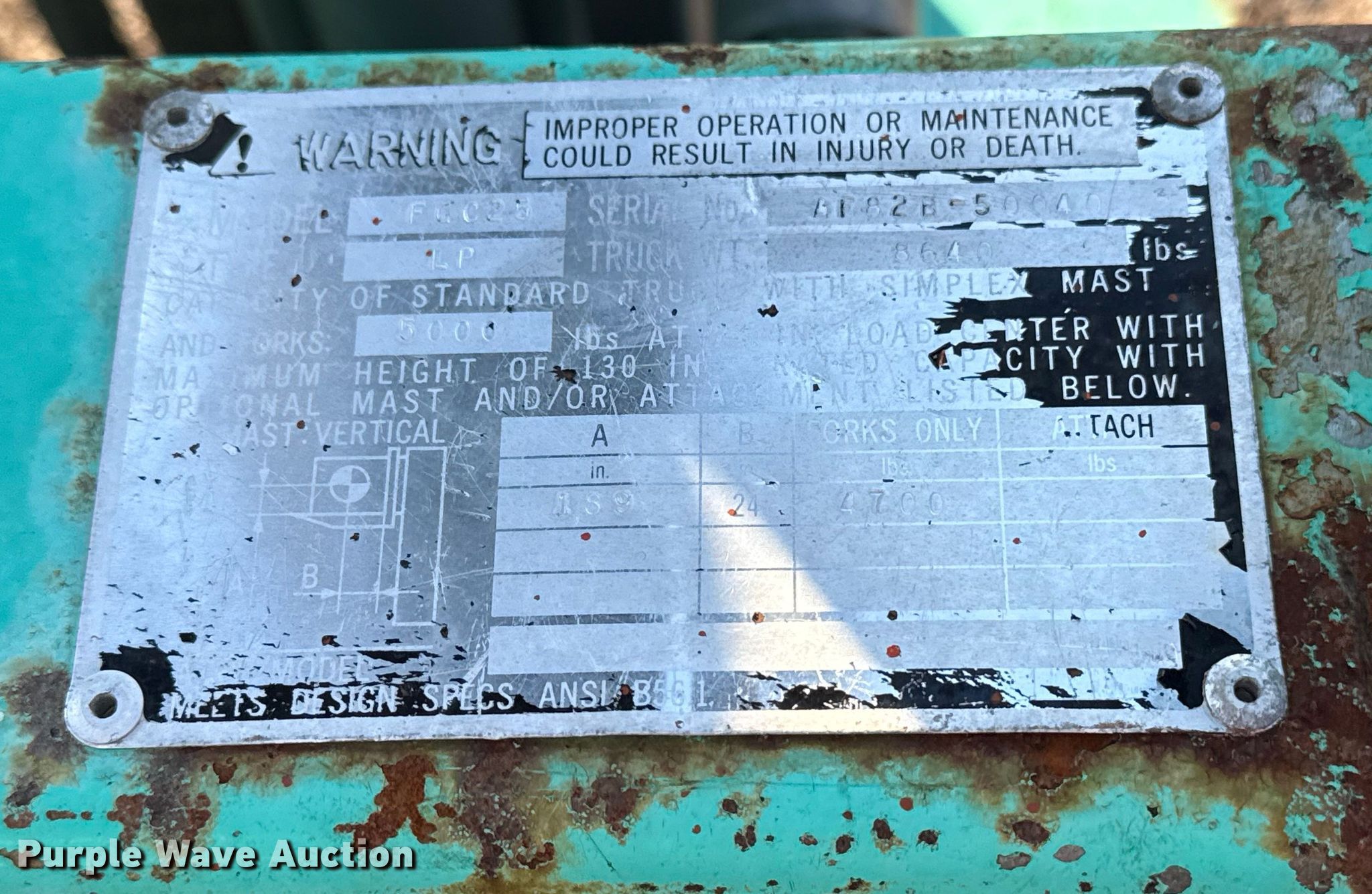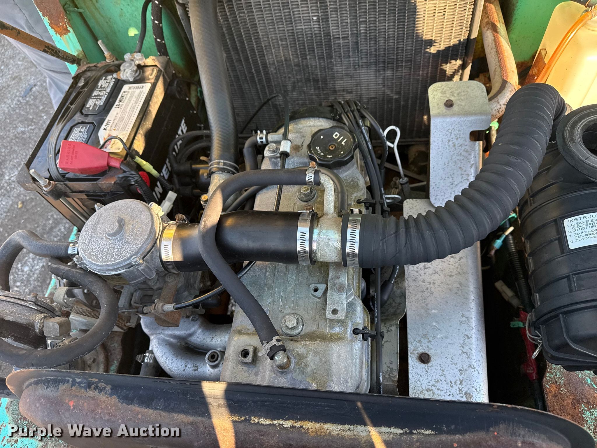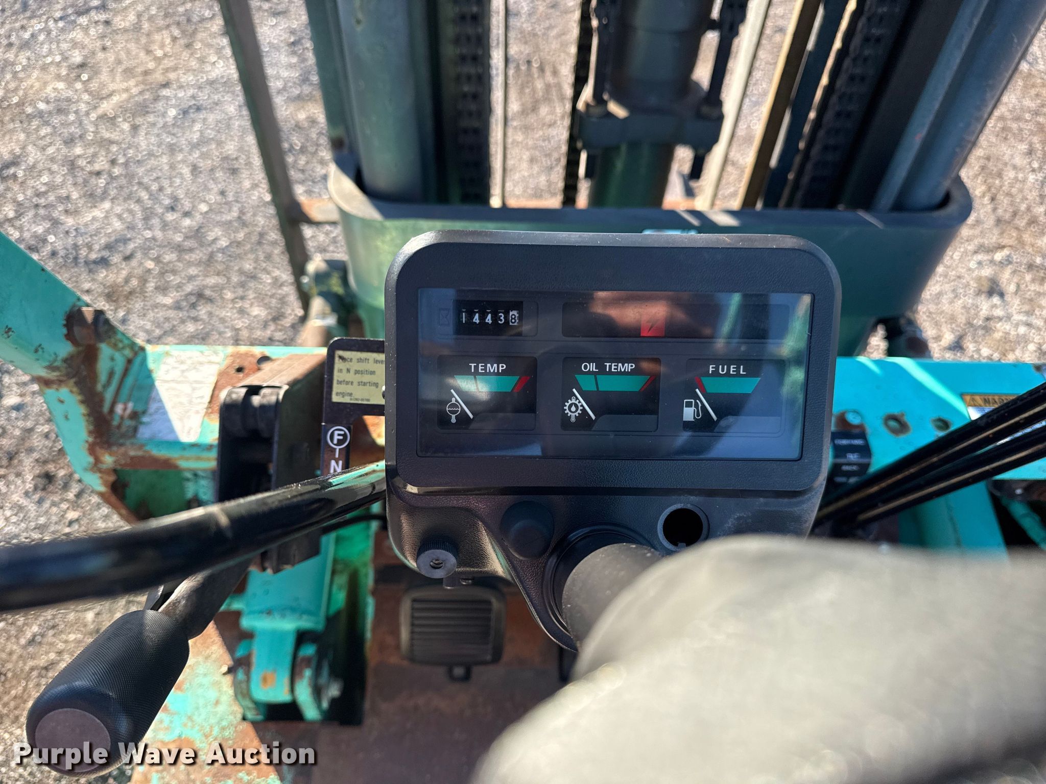 Purple Wave is selling a used Warehouse Forklift in Oklahoma. This item is a Mitsubishi FGC25 forklift with the following: Hours: 1,444 on meter, Serial: AF82B-50040