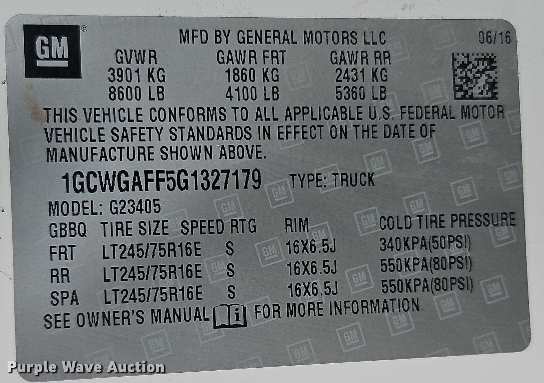 2016 Chevrolet Express 2500 van | Tuesday December 30 Vehicles and Equipment Auction