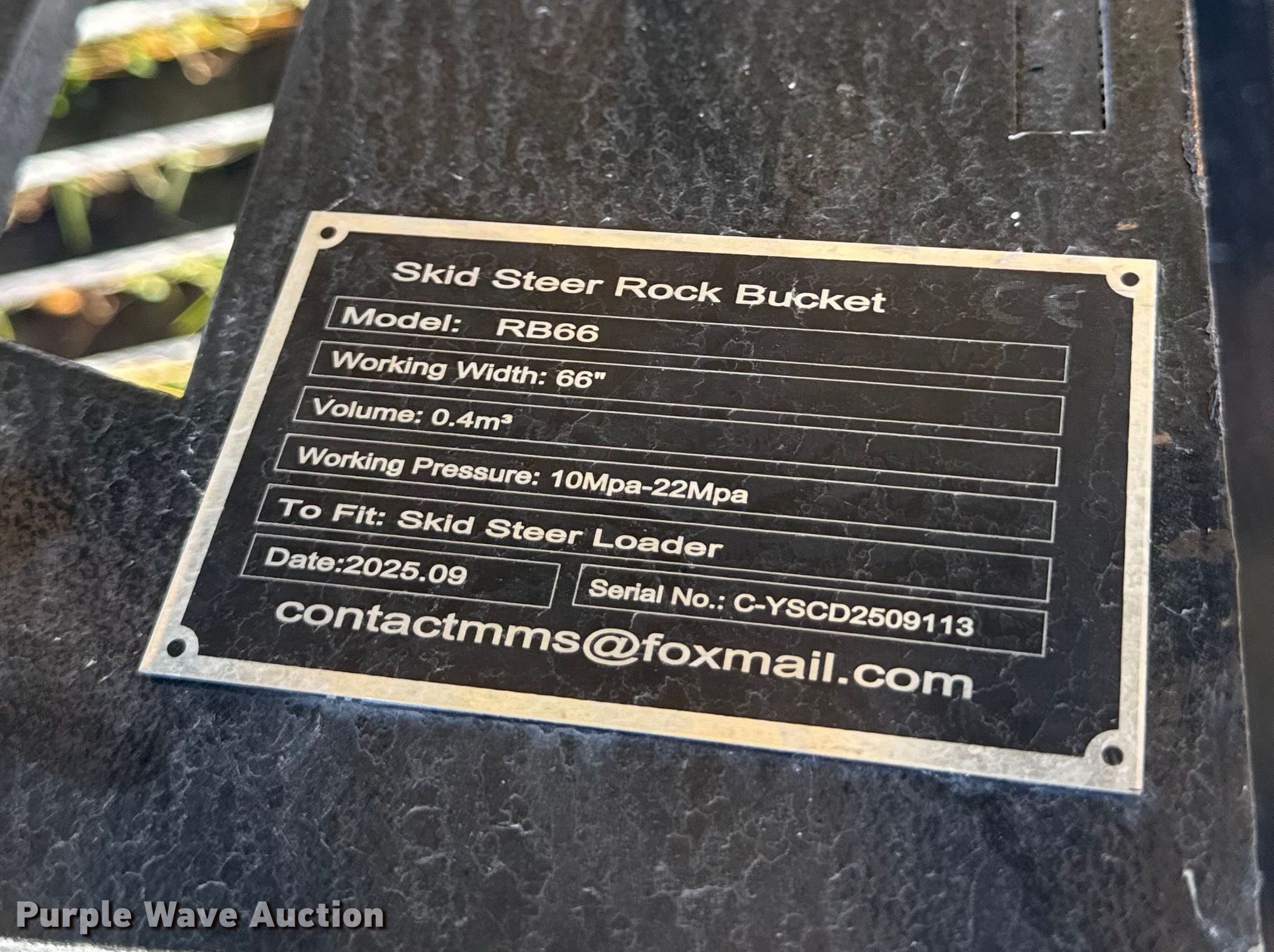 Purple Wave is selling a used Skid Steer Attach. in Kansas. This item is a 2025 Future RB66 skid steer rock bucket with the following: Serial: C-YSCD2509113, Width: 66"