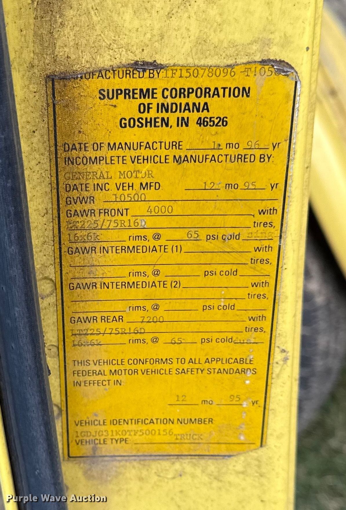 Purple Wave is selling a used Box Truck in Kansas. This item is a 1996 GMC G3500 box truck with the following: Miles: 76,768 on odometer, VIN: 1GDJG31K0TF500156
