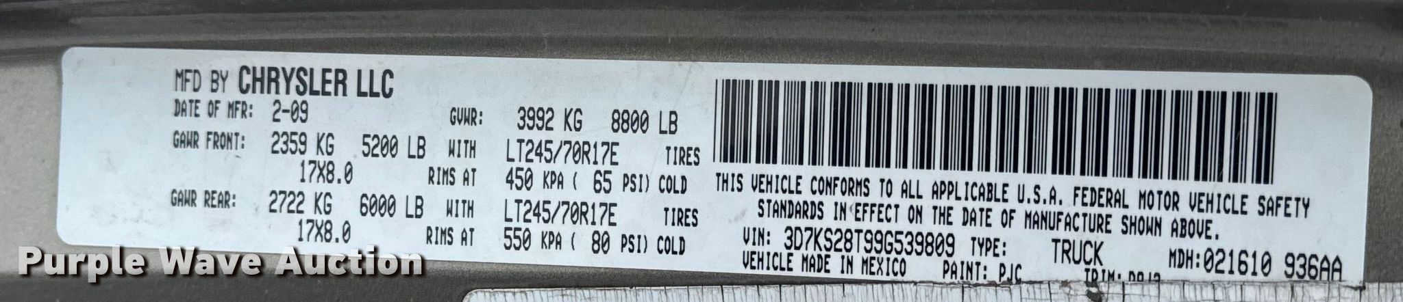Purple Wave is selling a used 3/4 or 1 Ton Pickup or Van in Missouri. This item is a 2009 Dodge Ram 2500 Quad Cab bale bed pickup truck with the following: Miles: 293,457 on odometer, VIN: 3D7KS28T99G539809