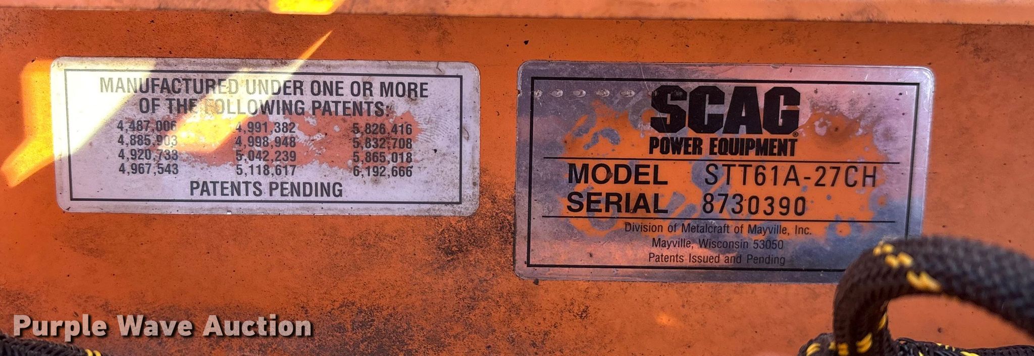 Take a look at this used Scag Turf Tiger STT61A-27CH ZTR lawn mower being sold on December 30th, 2025 in the Tuesday December 30 Vehicles and Equipment Auction made by Scag. Take a look at all of the item information below or take a look at similar auctions for Lawn and Garden.