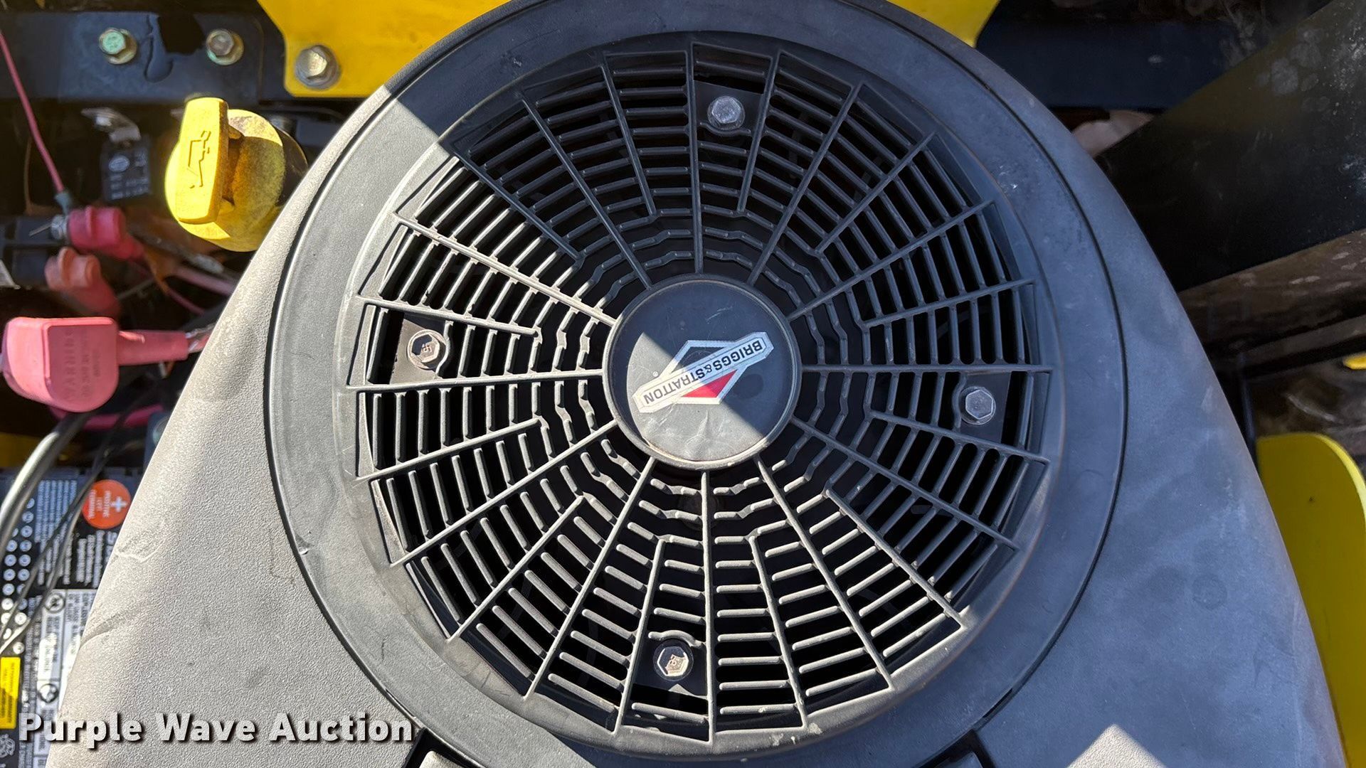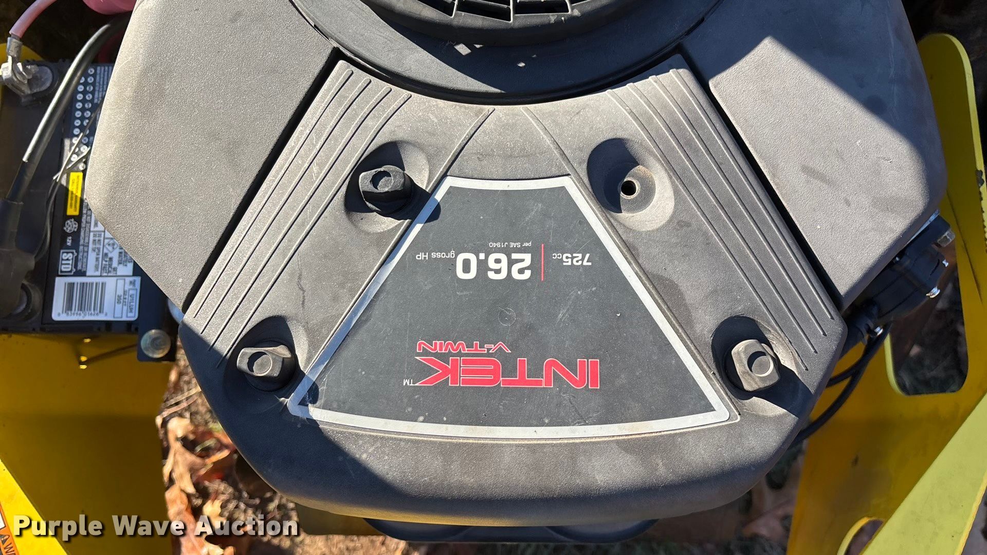 Great Dane Chariot GCBR2661S ZTR lawn mower. Hours: 1,000 on meter, Cutting width: 60", Serial: 638910014. Engine Briggs & Stratton Intek, Serial: GXA145A230828, Displacement: 725 cc, Cylinders: 2, Fuel type: Gas, HP: 26. Transmission Hydrostatic. Operators station OROPS. Features Mower deck Width: 60". Tires Front: 13x5.00-6, Rear: 23x9.50-12NHS. Notes OROPS folding support bolt missing. Springfieldmow. Willard, MO 65781