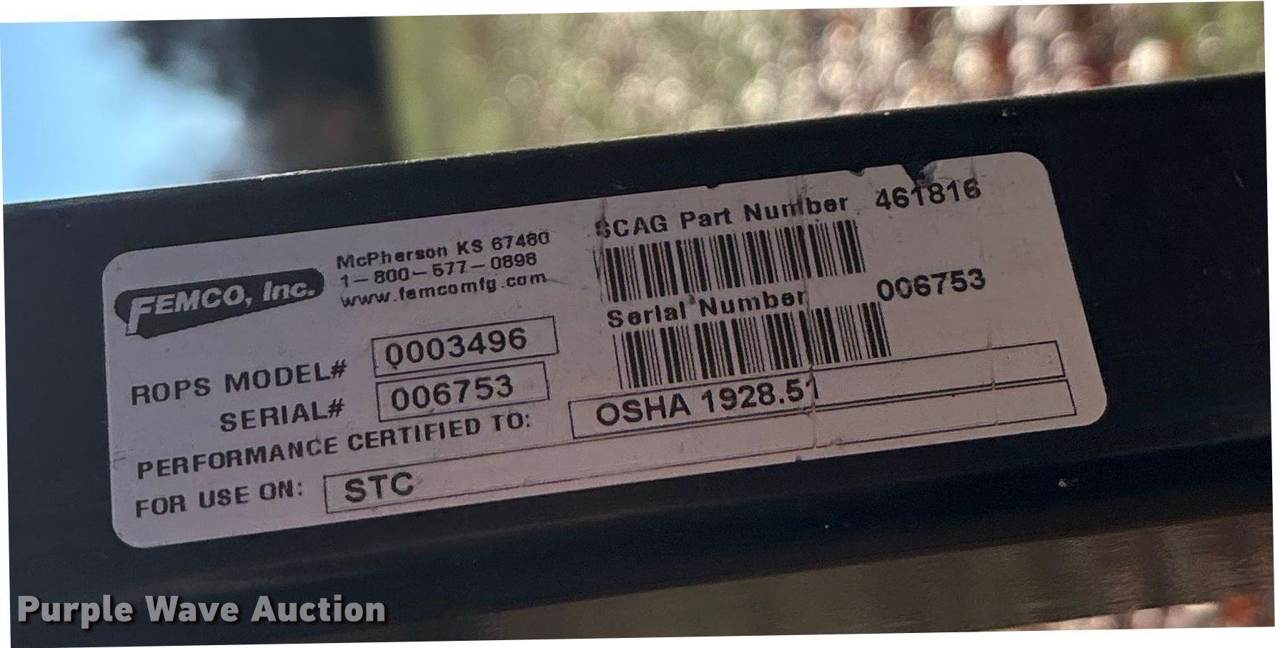 Purple Wave is selling a used Lawn Mower in Missouri. This item is a Scag Tiger Cub STC61V-23BV ZTR lawn mower with the following: Hours: 506 on meter, Cutting width: 60", Serial: D1200842