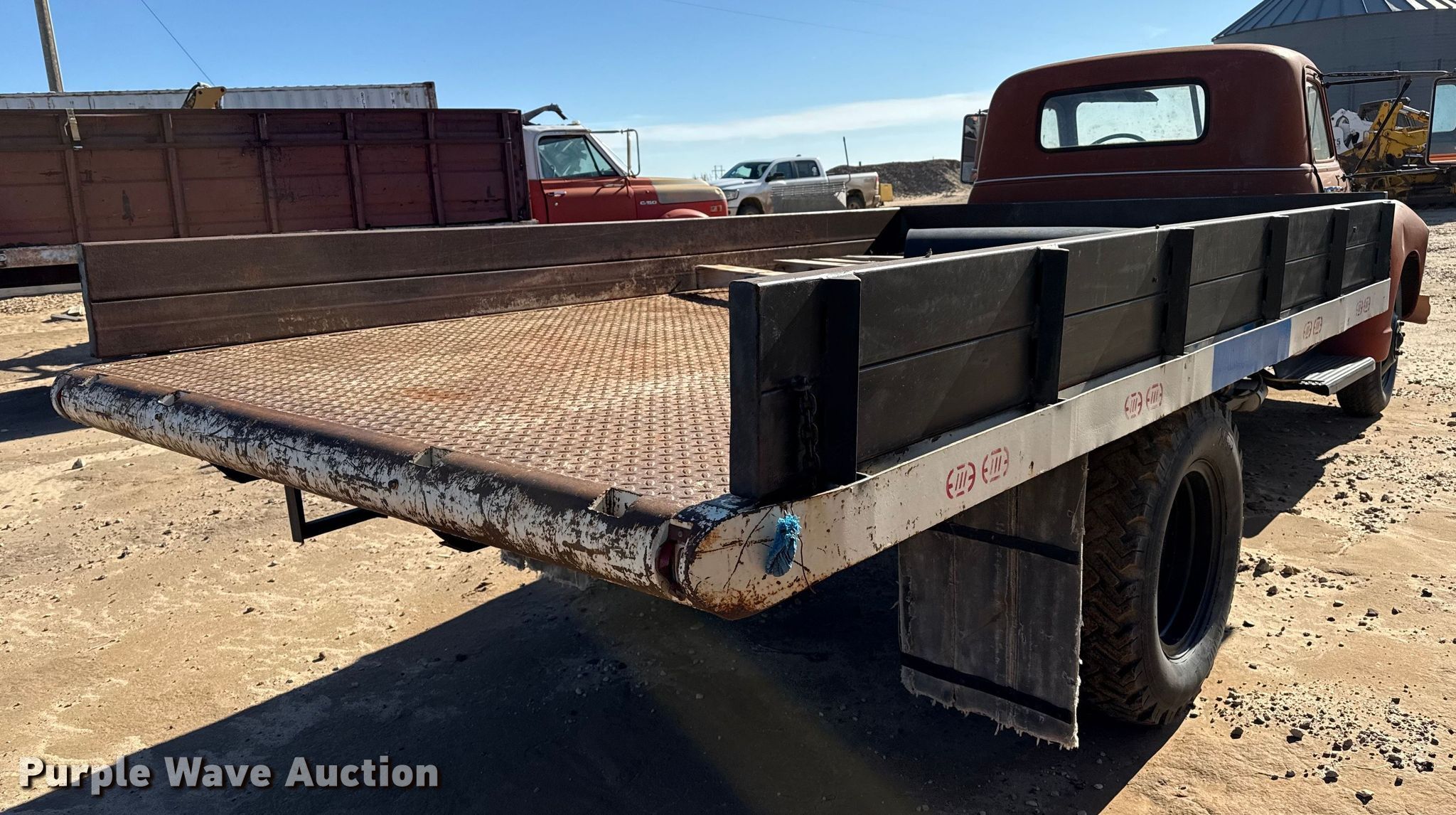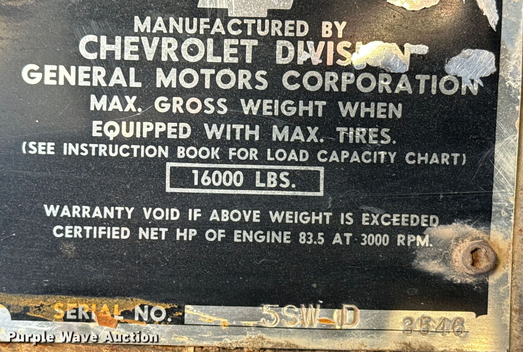 Chevrolet 6400 flatbed truck. Miles: 26,848 on odometer, VIN: 5SWD3546. Engine Cylinders: 8, Fuel type: Gas. Transmission Manual. Chassis Axles: Single, Suspension: Spring, Brakes: Hydraulic, PTO, GVWR: 16,000 lbs. Features Bed Dump flatbed, Length: 13' 6", Width: 95", Ram: Single. Tires Size: 7.50-20. Notes Unknown operating condition. Transfer of ownership documentation will be a bill of sale. Harvey & Son Electric. Liberal, KS 67901