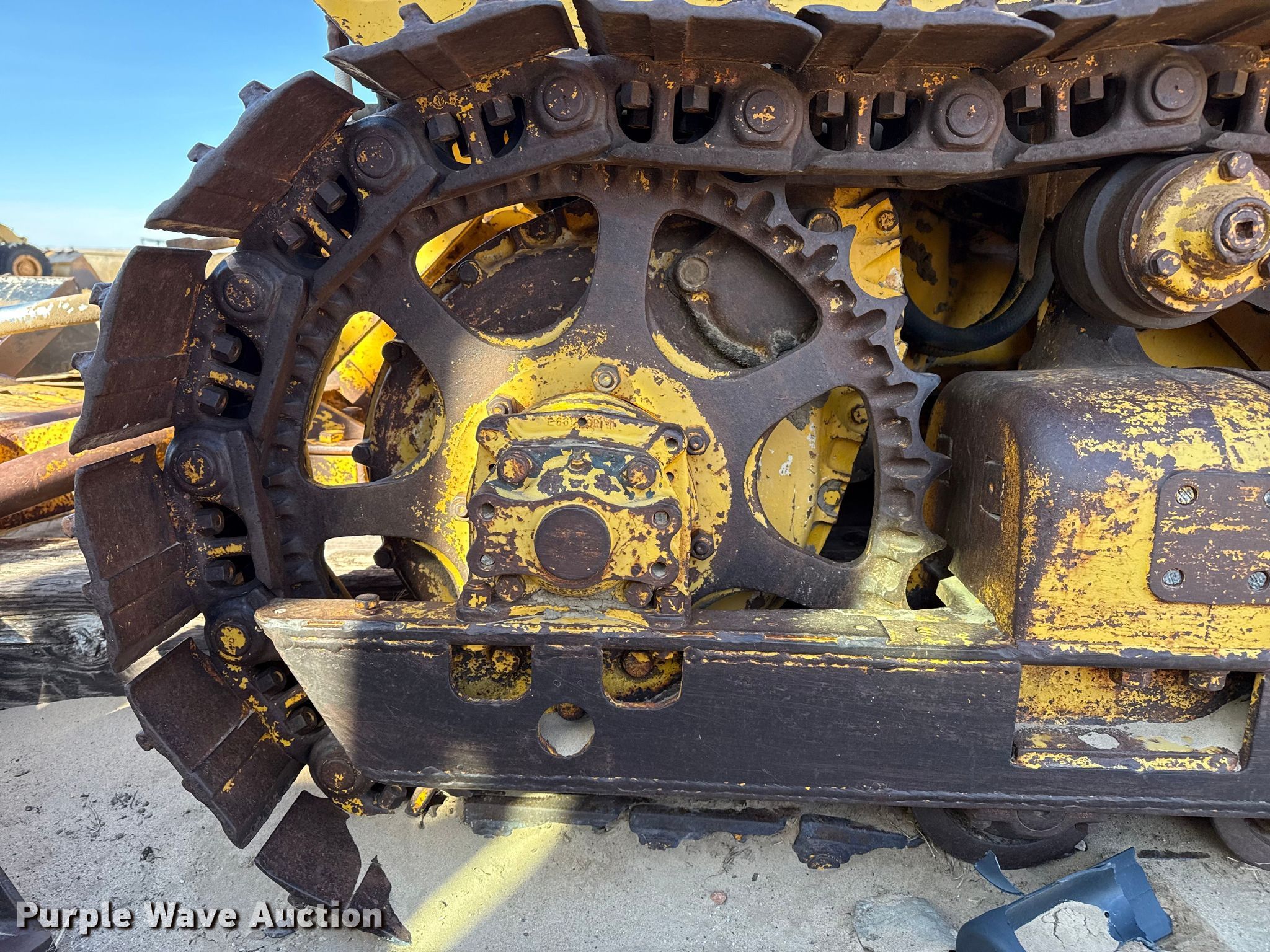 Drott 9K3 track loader. Serial: B13056. Engine Cylinders: 6, Fuel type: Diesel. Transmission Direct-drive, 5F - 1R. Operators station Steering: Clutch brake. Features Dozer blade Width: 78", Attachments Ripper. Tracks Width: 15", Grouser pads: Triple, Bottom rollers: 5. Notes Unknown operating condition. Harvey & Son Electric. Liberal, KS 67901