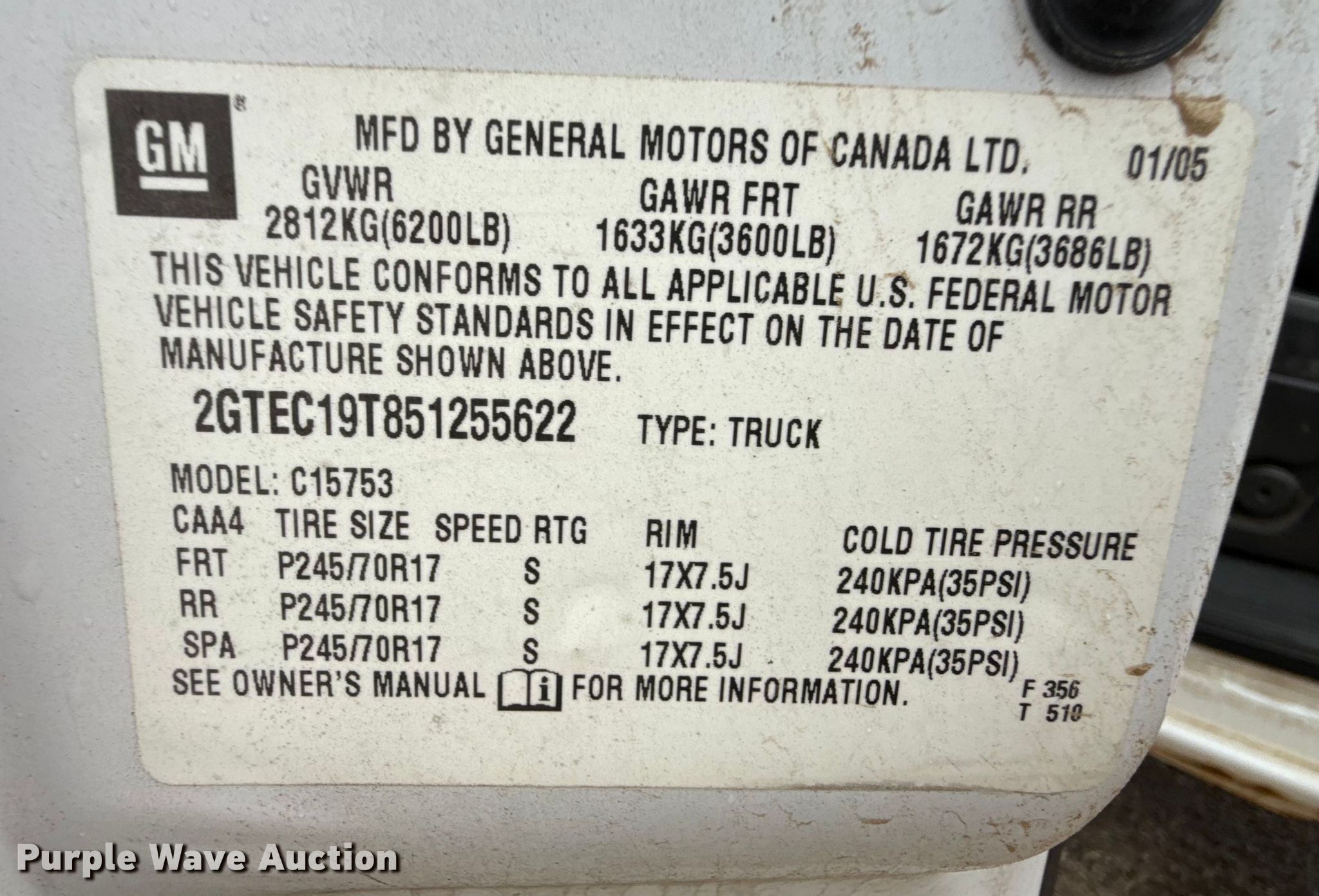 - VIN: 2GTEC19T851255622