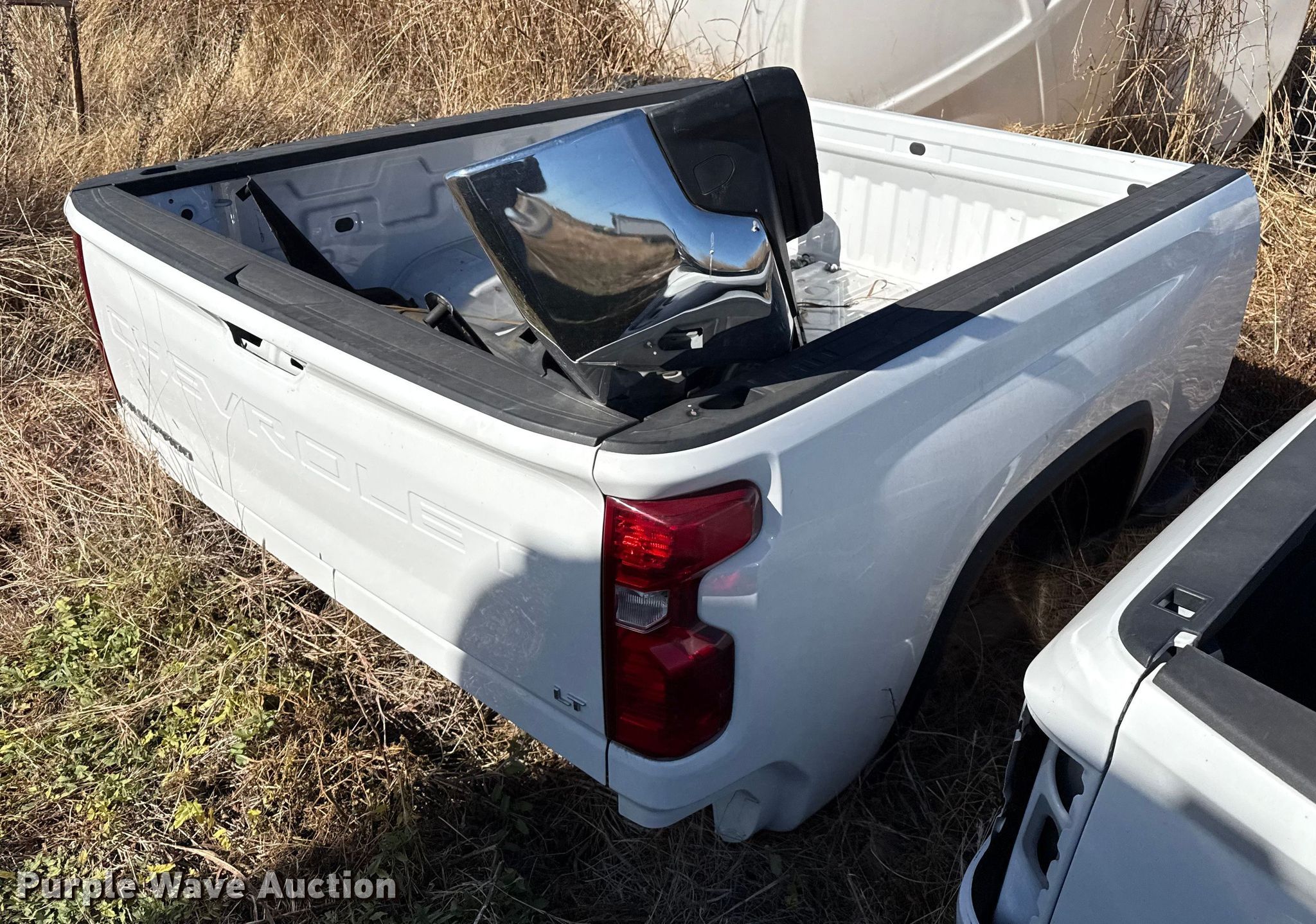 Purple Wave is selling a used Automotive Parts or Acces. in Kansas. This item is a Chevrolet pickup truck bed with the following: Front bumper, Rear bumper, Frame mount receiver hitch