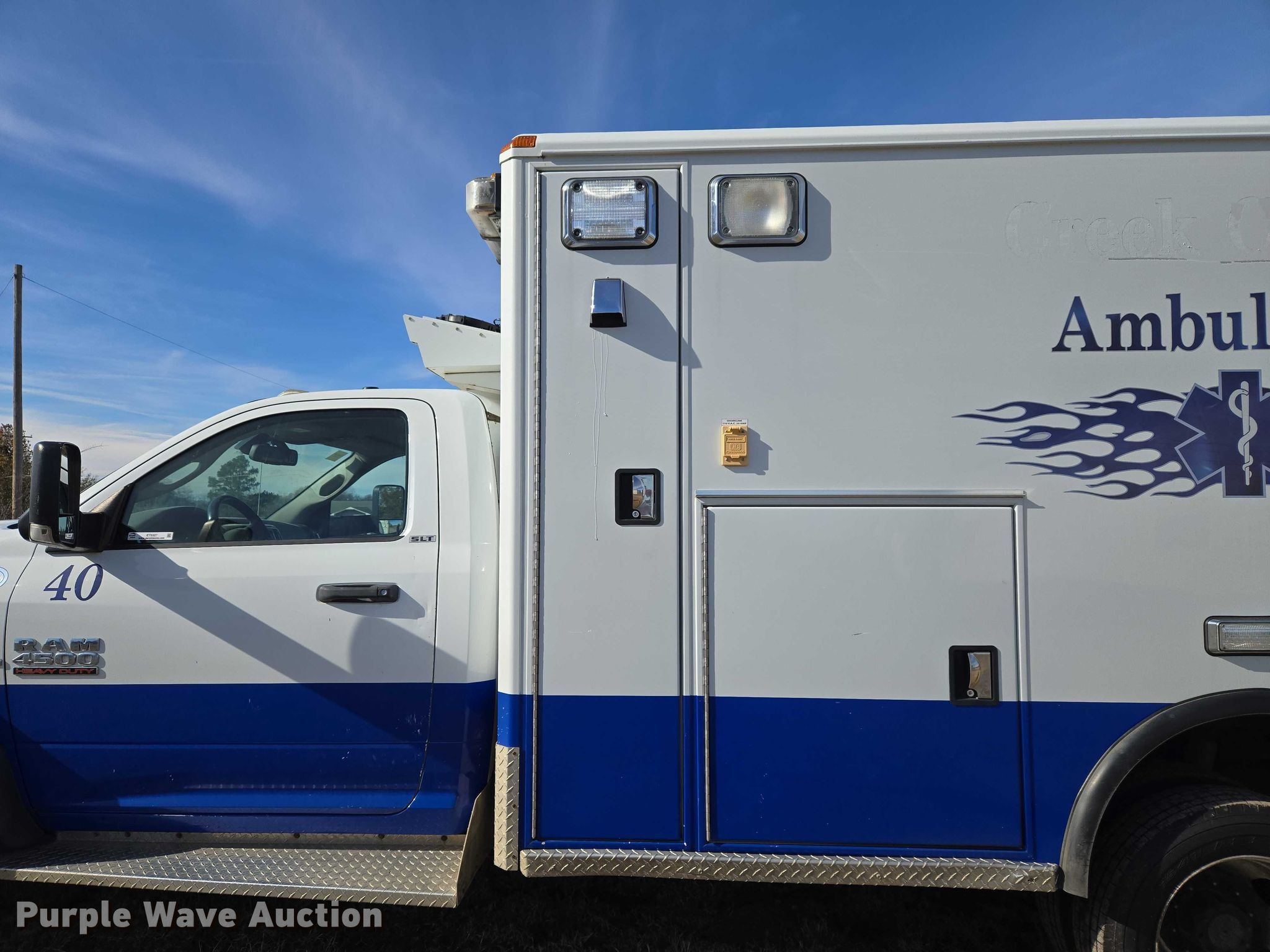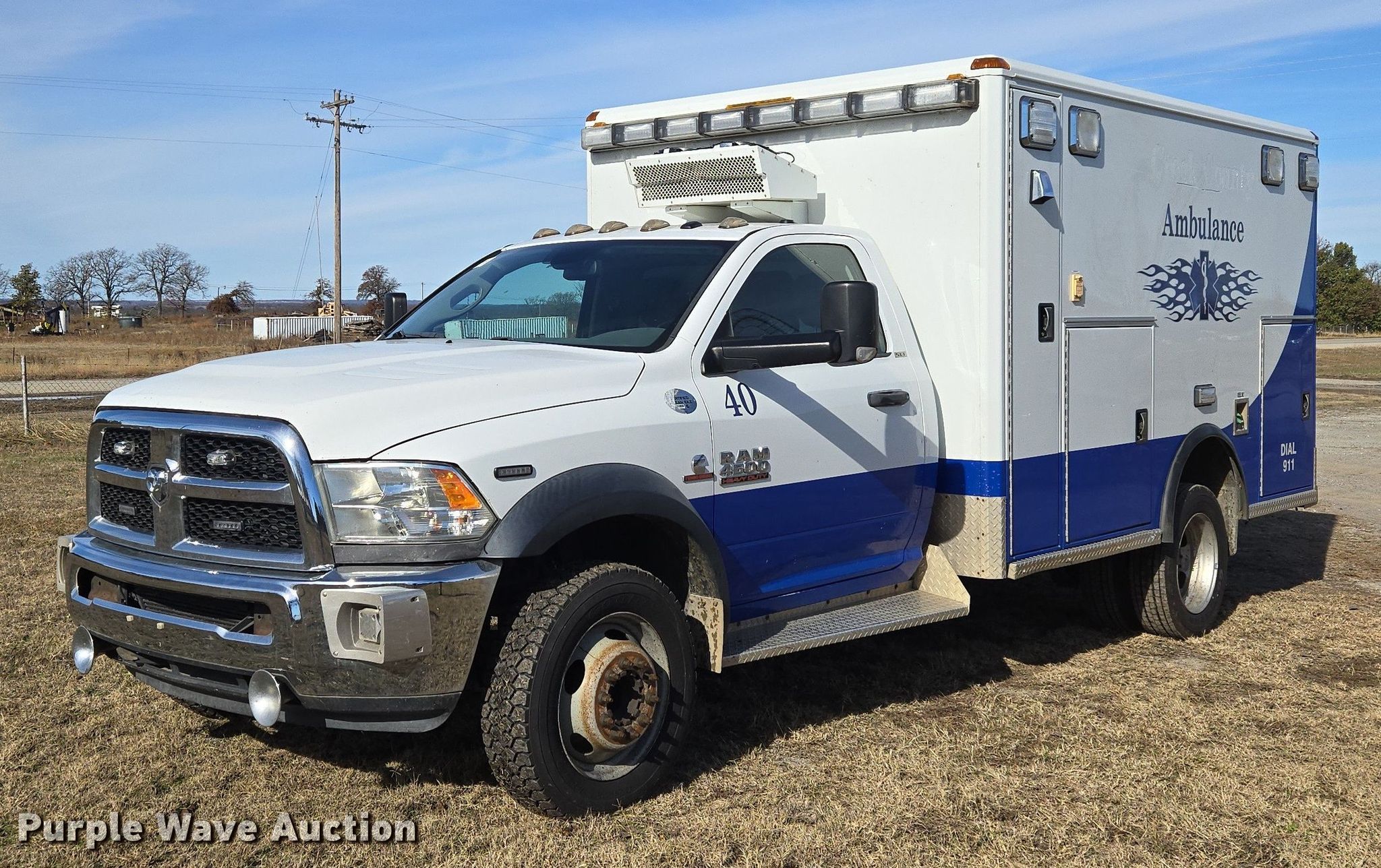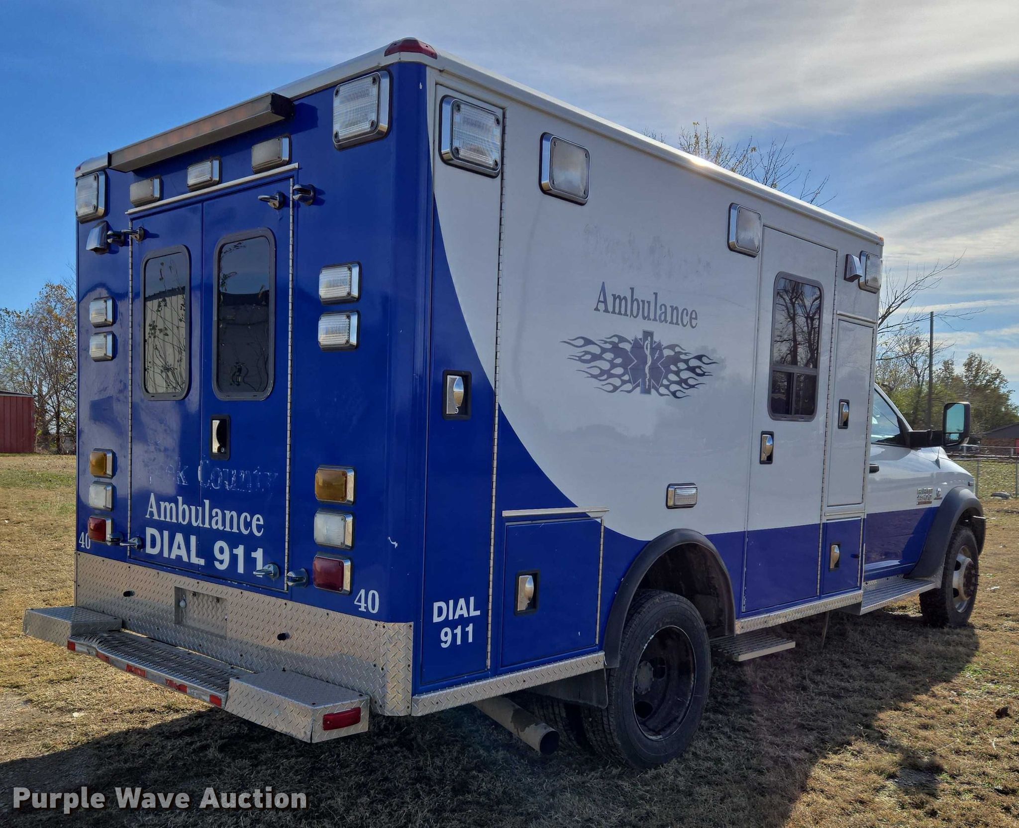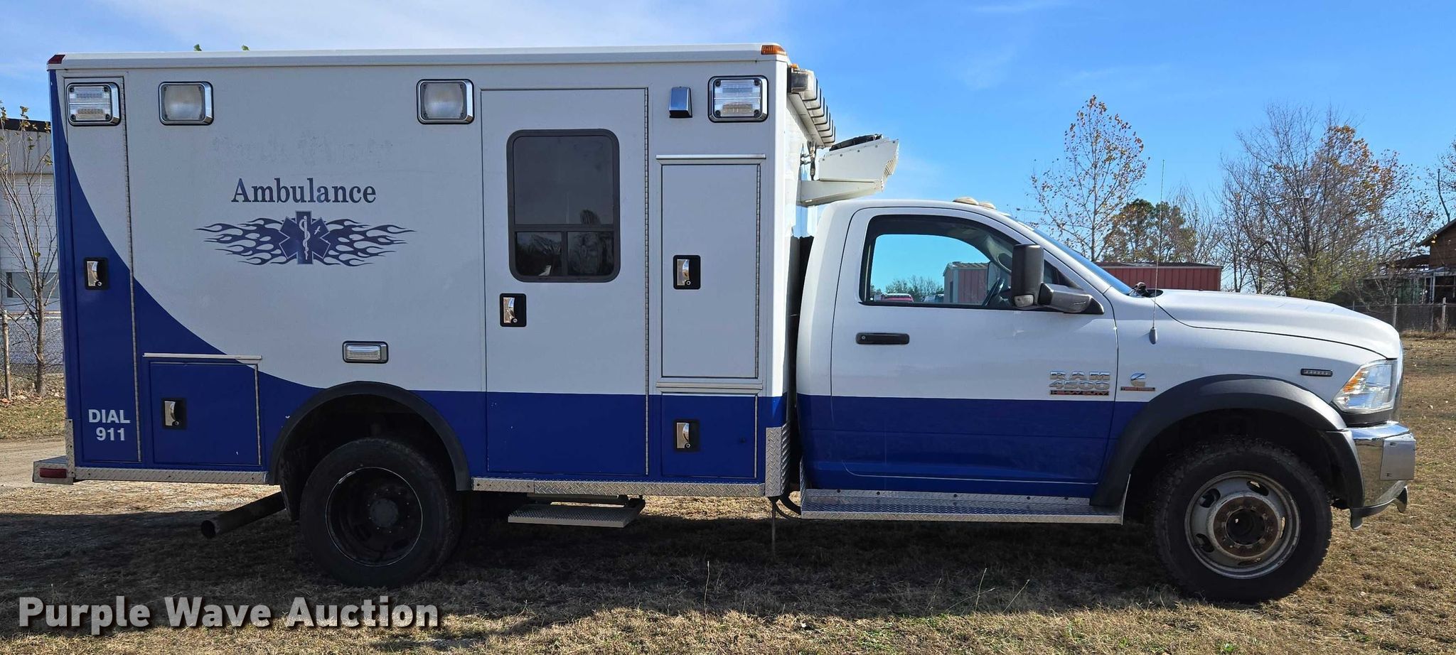 Purple Wave is selling a used Fire Truck or Emergency Vehicle in Oklahoma. This item is a 2014 RAM 4500HD ambulance with the following: Miles: 482,181 on odometer, VIN: 3C7WRKBL2EG135019