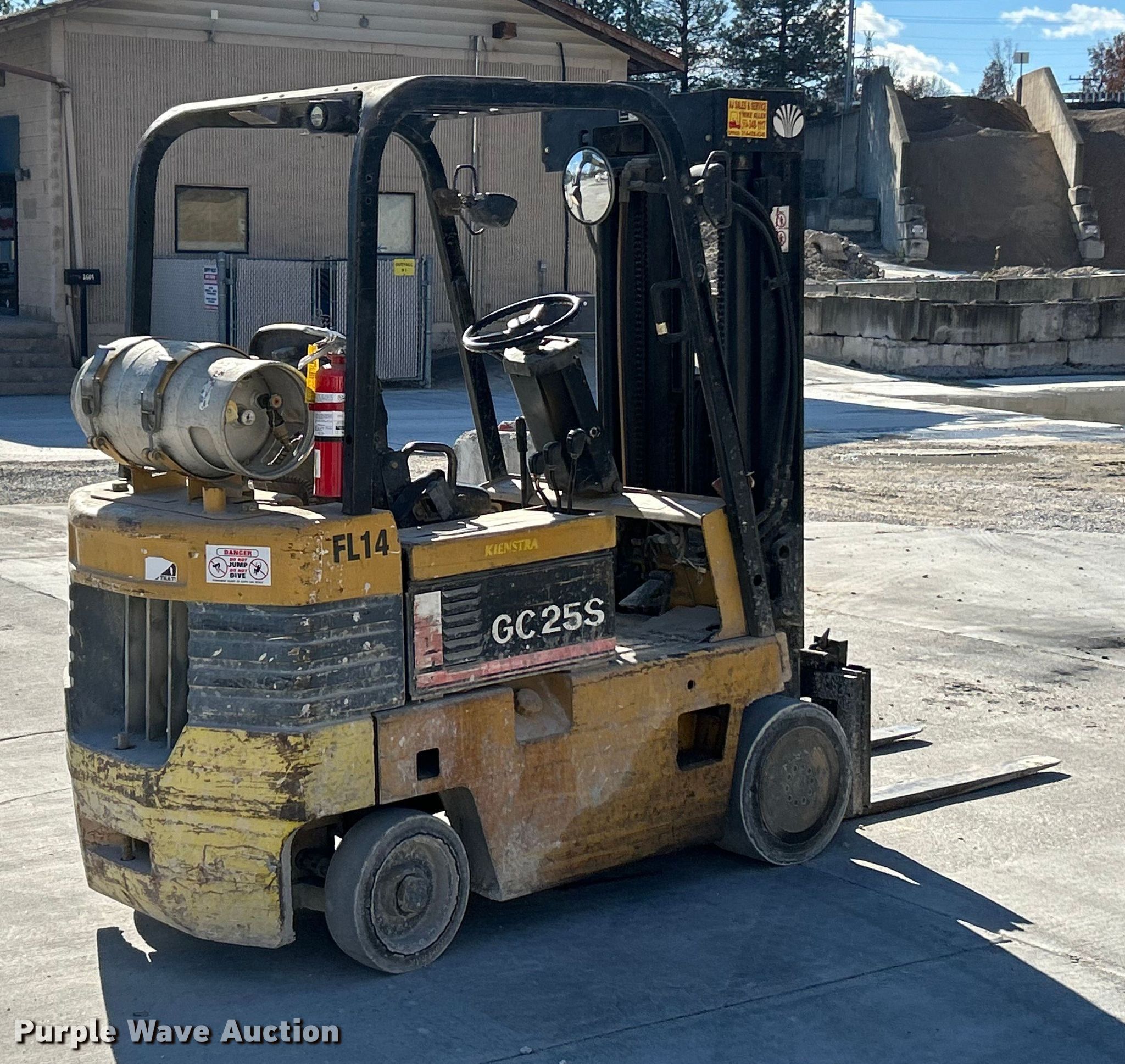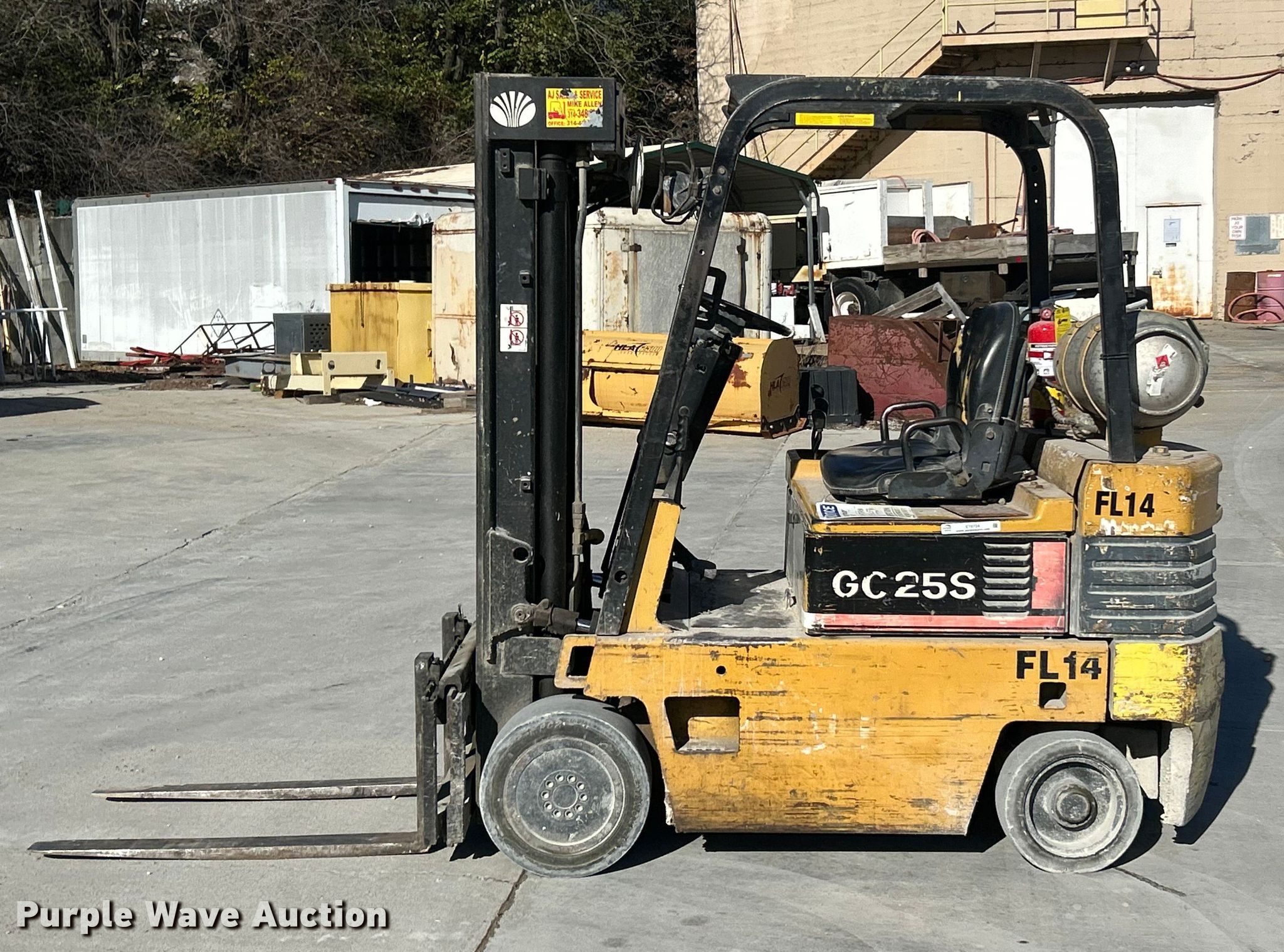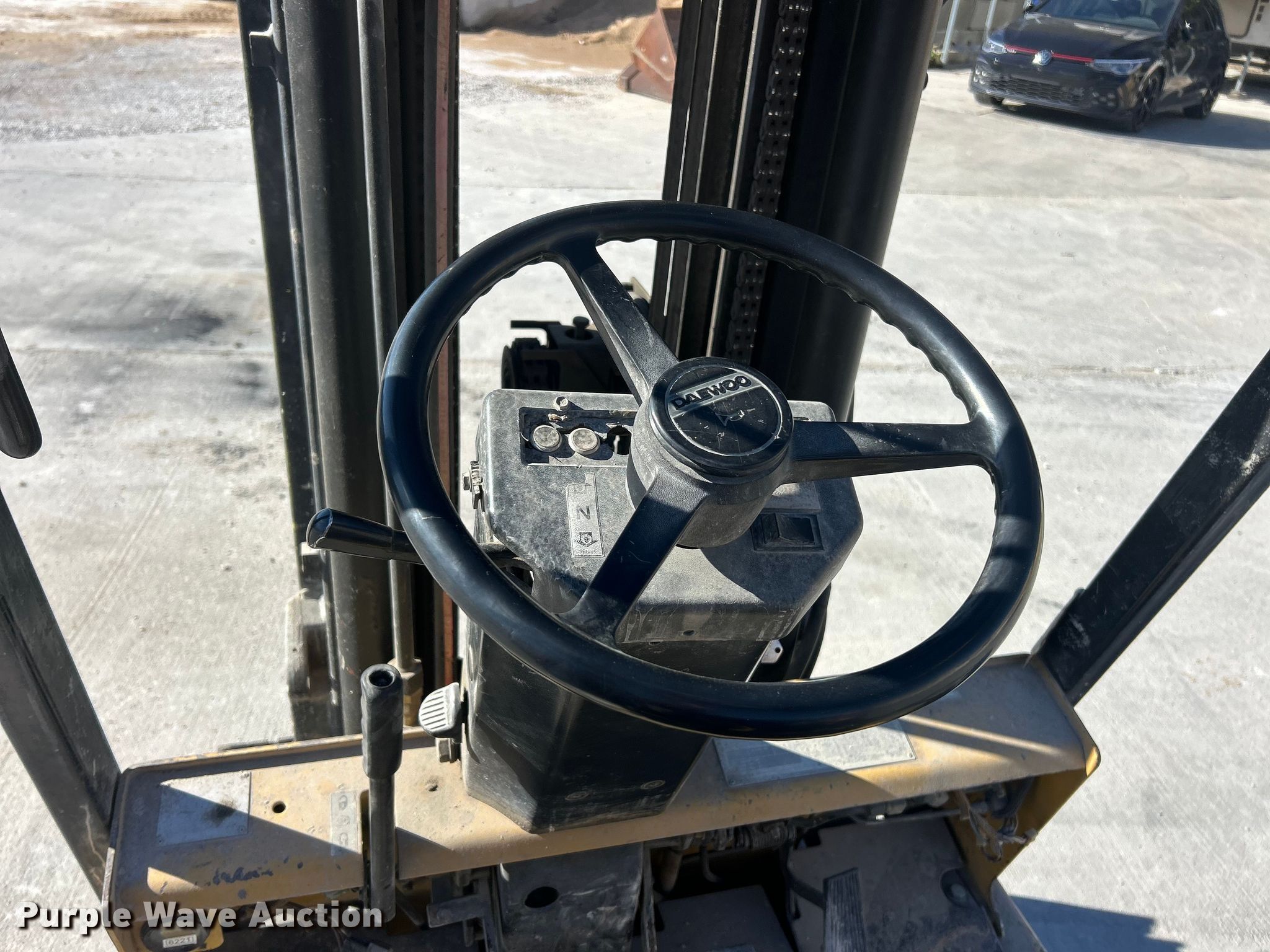 Purple Wave is selling a used Warehouse Forklift in Missouri. This item is a Daewoo GC25S forklift with the following: Hours: 8,318 on meter, Serial: 206-00366