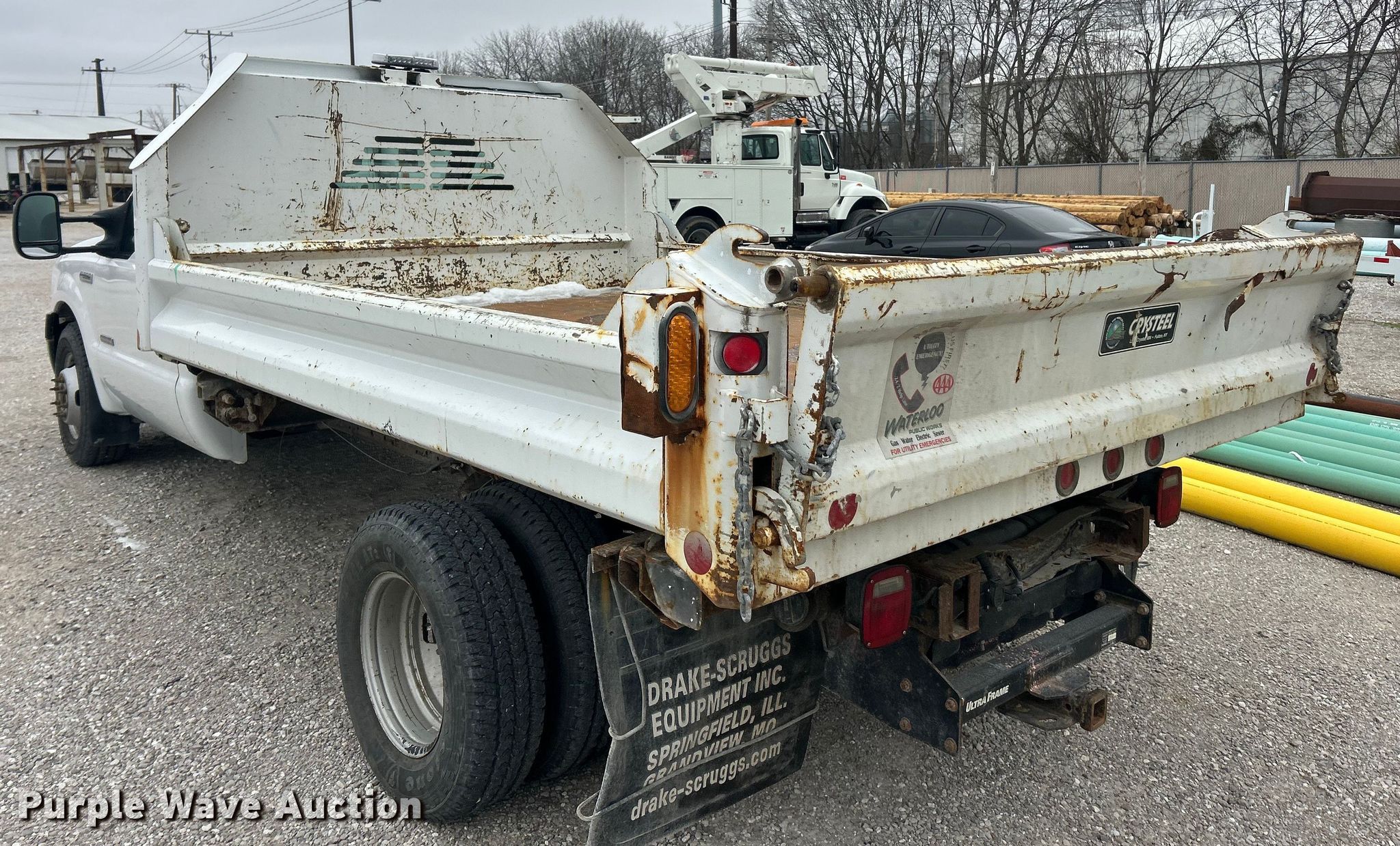 2007 Ford F350 XL Super Duty dump bed pickup truck. Miles: 44,514 on odometer, VIN: 1FDWF36P87EA91655. Engine Displacement: 6.0L, Cylinders: 8, Fuel type: Diesel. Transmission Automatic. Interior AC, Heat, Auxiliary controls, Brake controller. Features Bed Dump bed, Length: 11', Width: 96". Tires Size: 246/75R17. Illinois title. Title distribution may be delayed up to 14 days from verification of funds. Waterloo, IL 62298