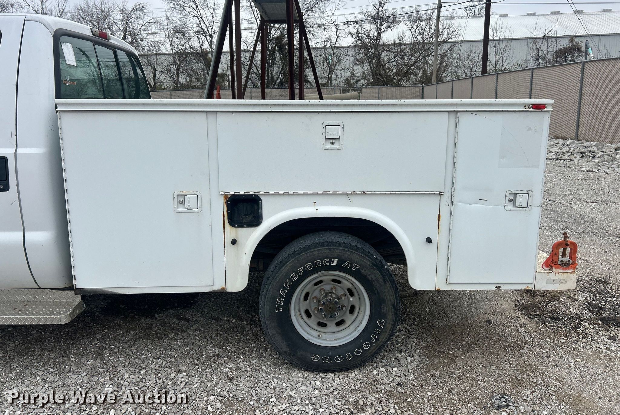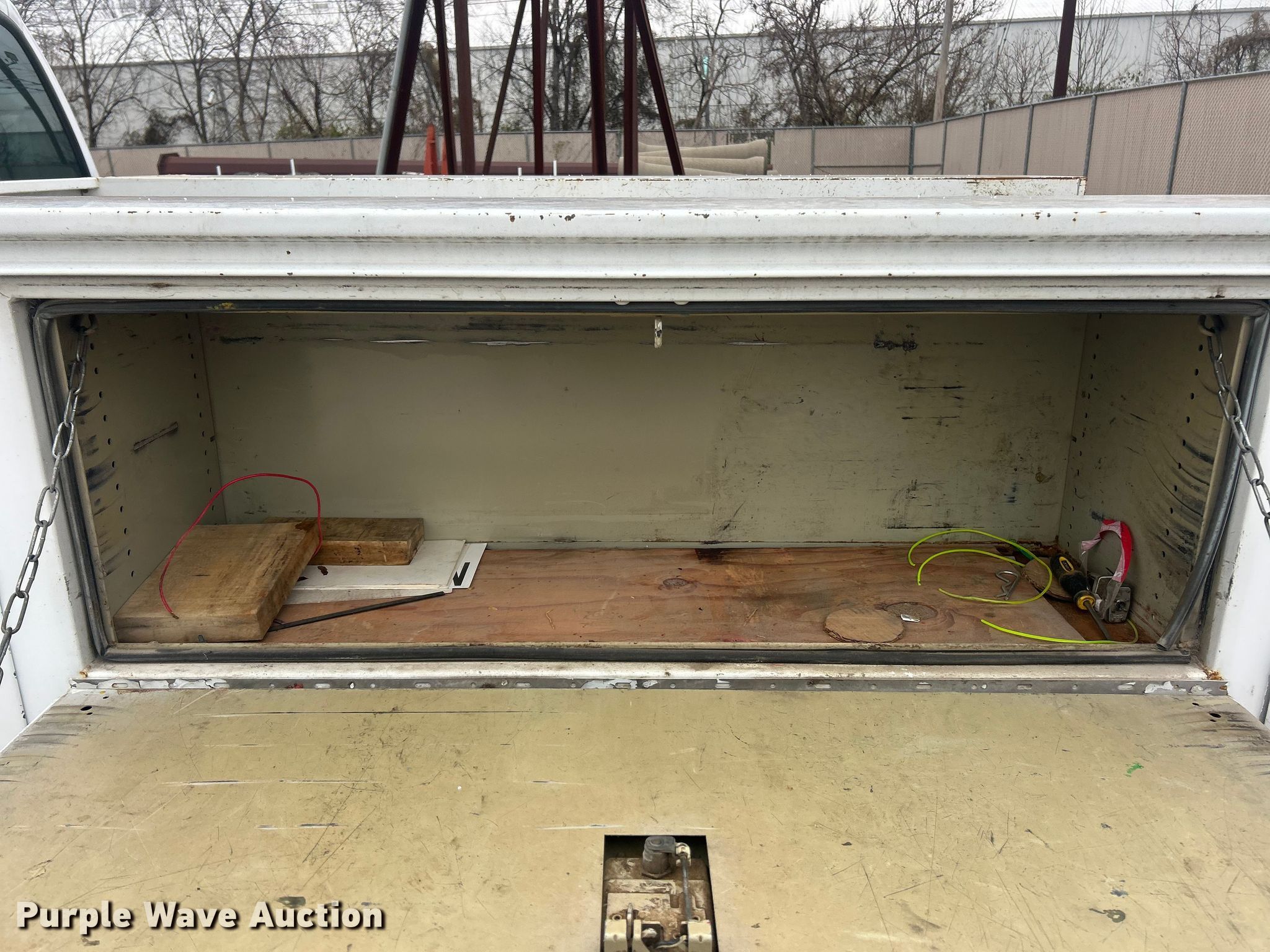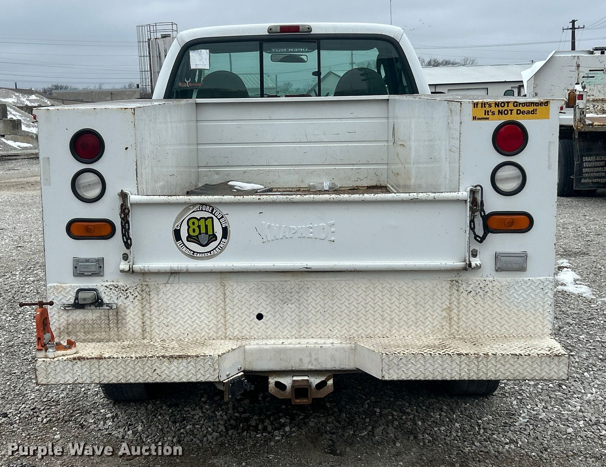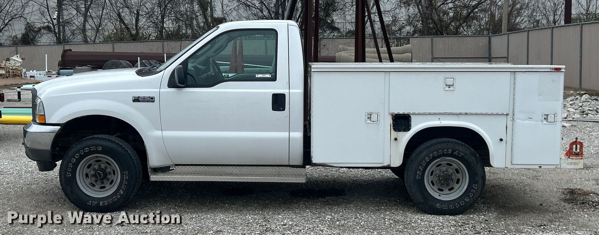 This 2003 Ford F250 XL Super Duty utility bed pickup truck will sell to the highest bidder regardless of price.