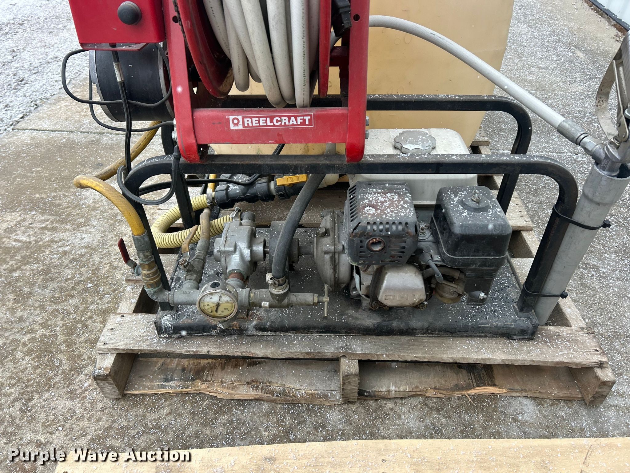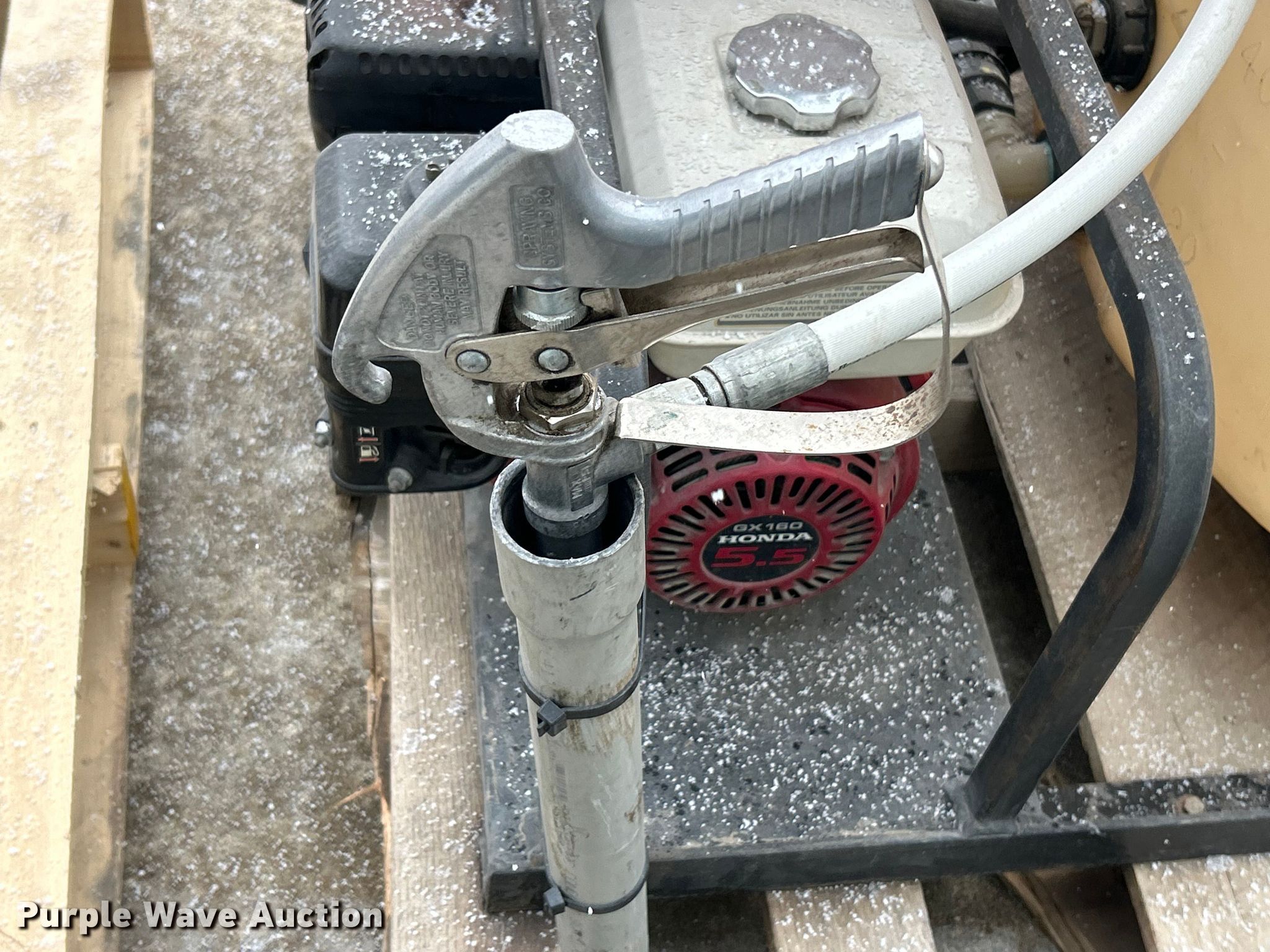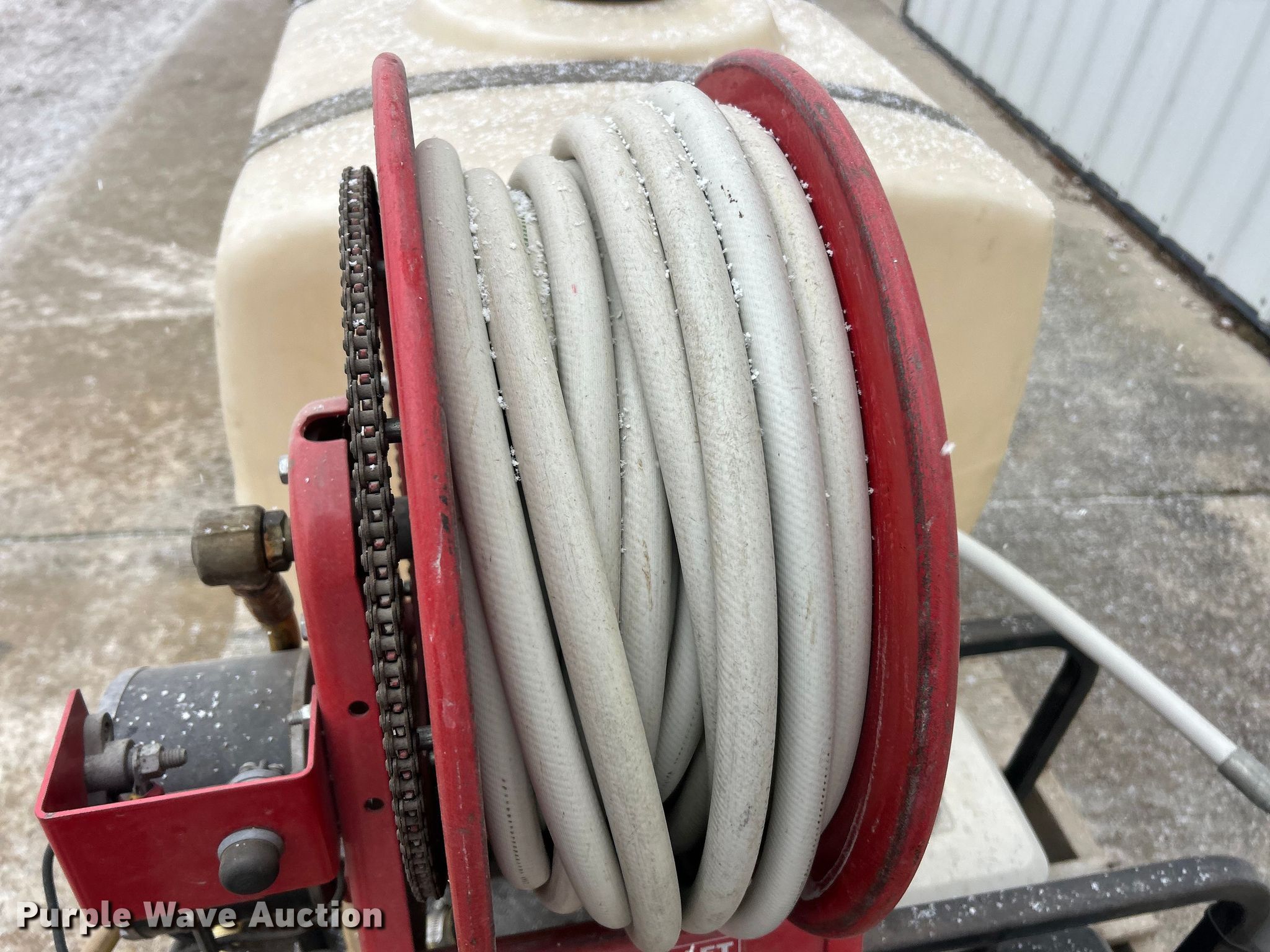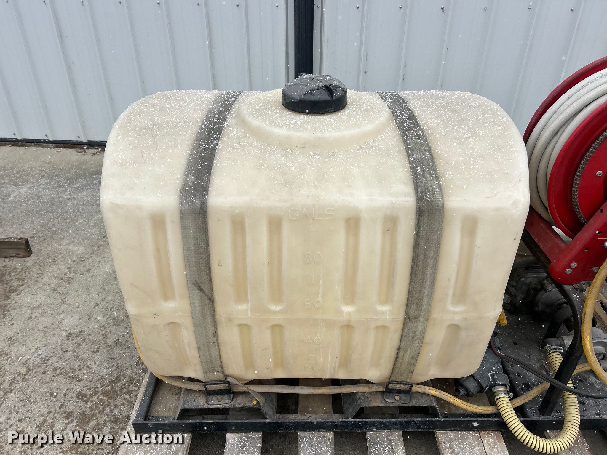 Sprayer. Skid mounted, Tank capacity: 80 gallons, Honda GX 160 single cylinder gas engine, Hose reel, Wand. Waterloo, IL 62298