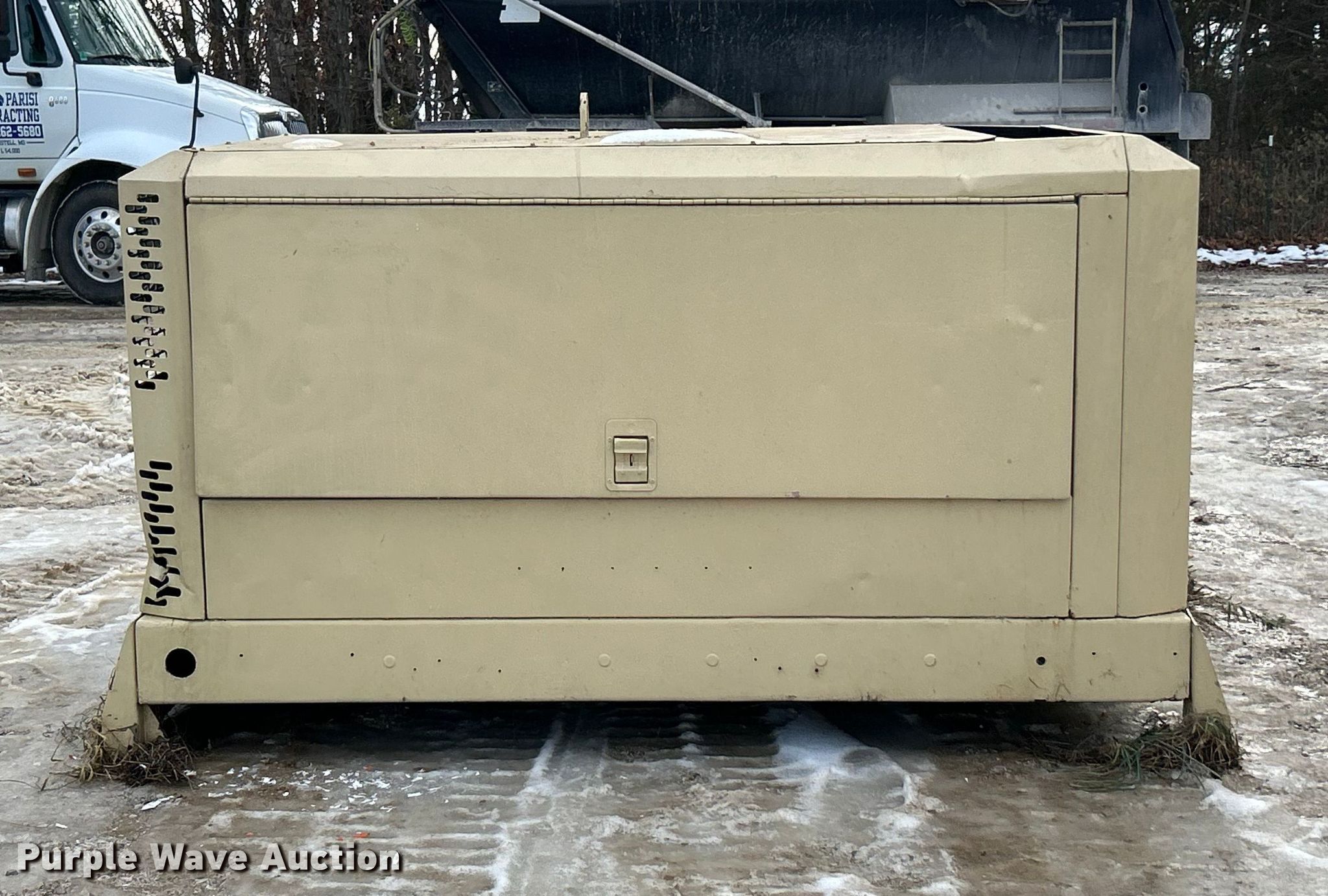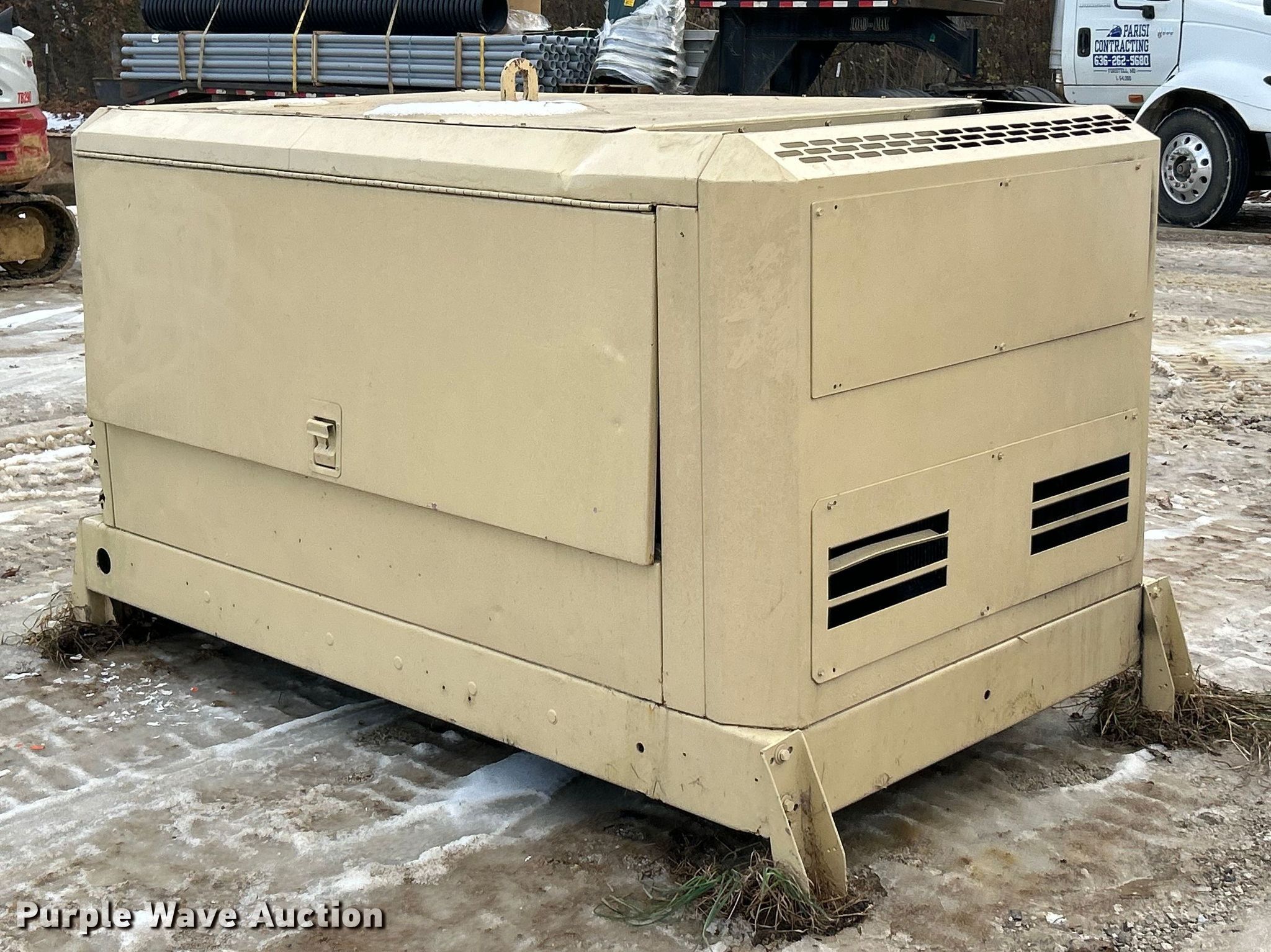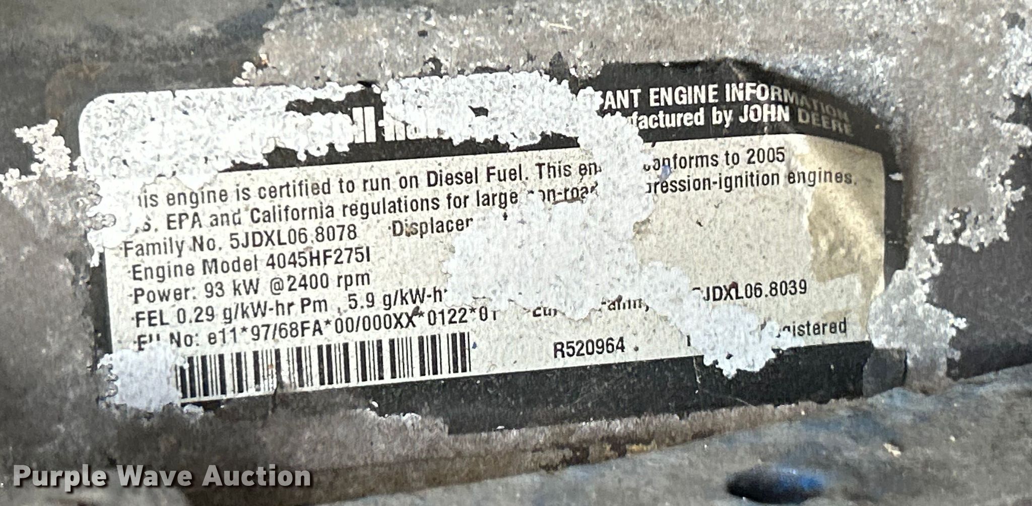 2005 Ingersoll Rand XP375WIR air compressor. Serial: 358357UFPA57. Engine John Deere, Cylinders: 4, Fuel type: Diesel. Features 8' L x 57" W. Notes Control panel missing , Non-operational air compressor, does not build air pressure, Unknown operating condition. Parisi Contracting. Foristell, MO 63348