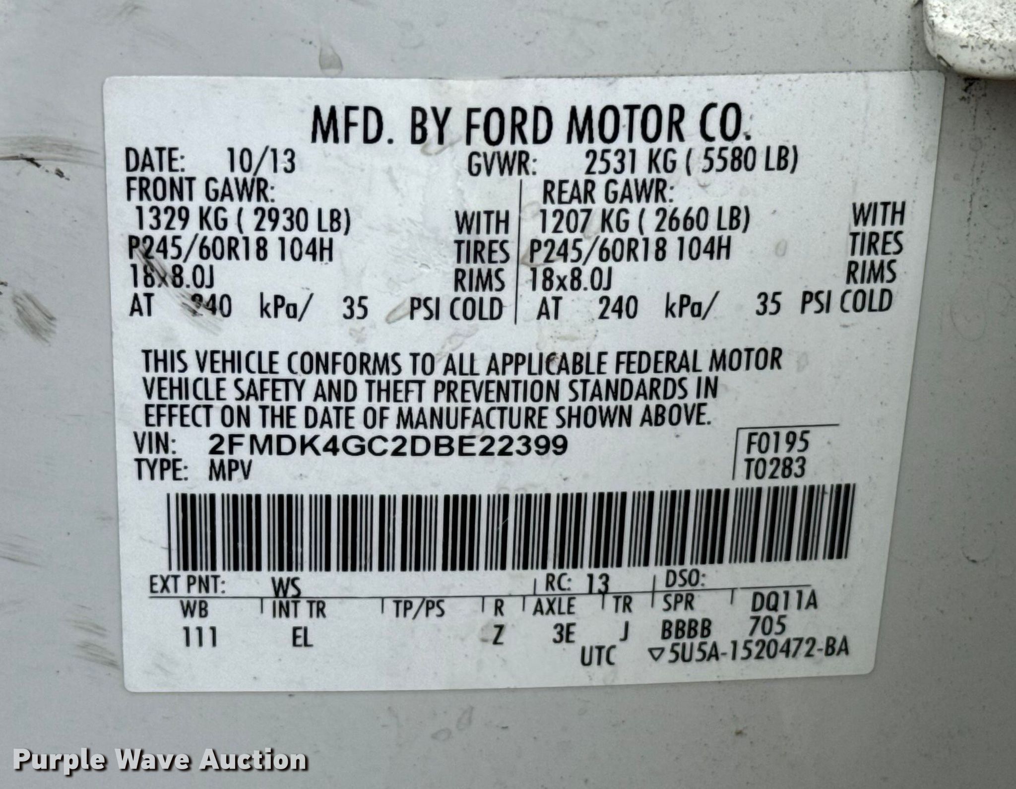 Purple Wave is selling a used Passenger Vehicle in Oklahoma. This item is a 2013 Ford Edge SUV with the following: Miles: 154,916 on odometer, VIN: 2FMDK4GC2DBE22399, Unit #: E22399