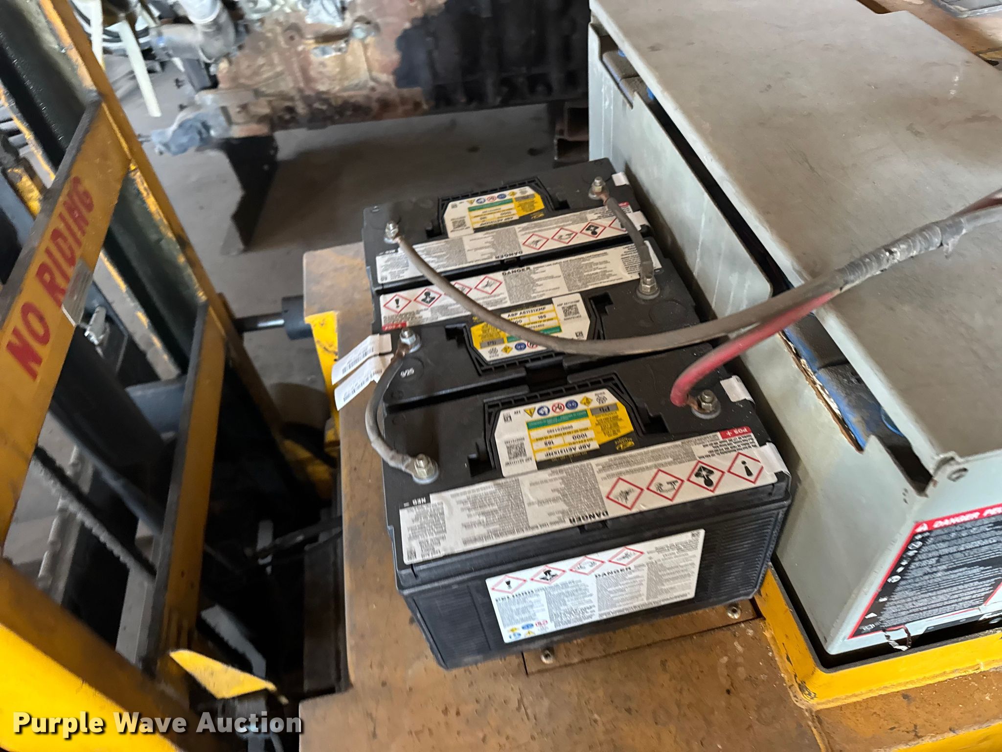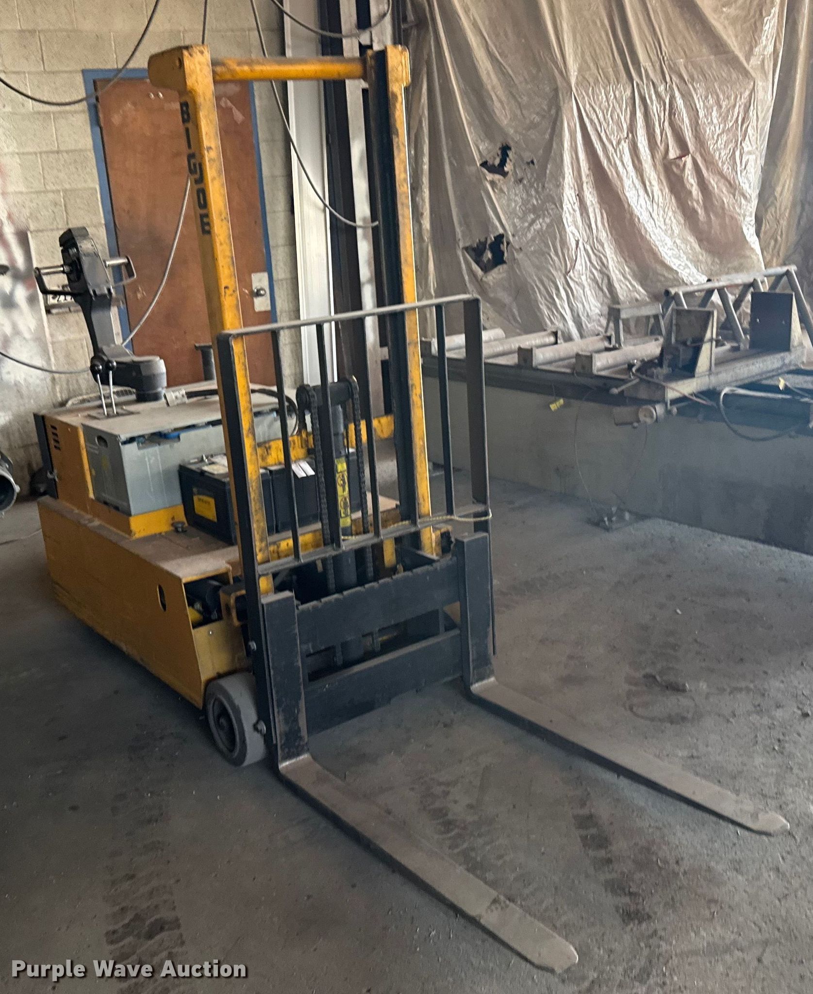 Purple Wave is selling a used Warehouse Forklift in Kansas. This item is a Big Joe pallet stacker with the following: Hours: 574 on meter