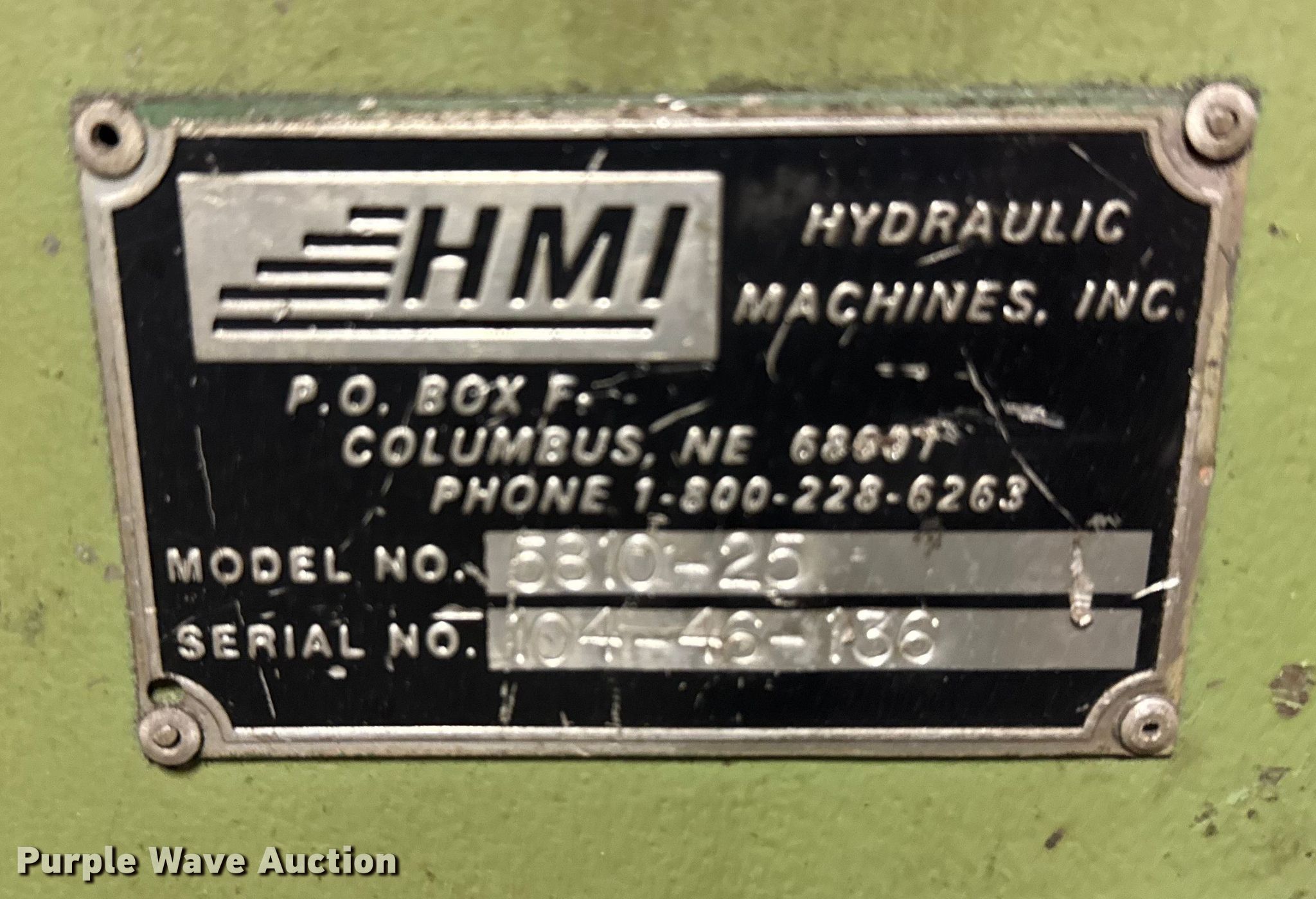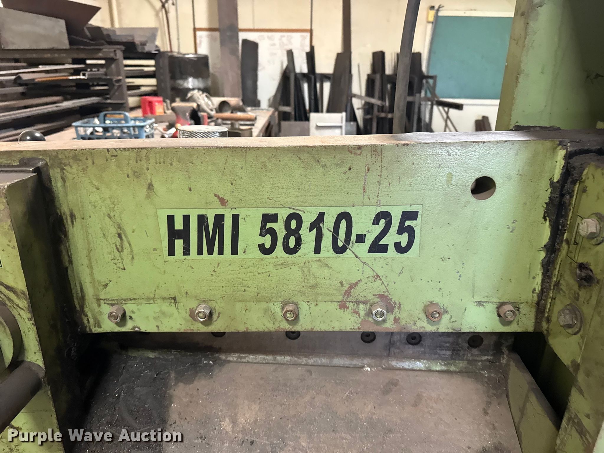 Purple Wave is selling a used Machine Shop Tools and Equip. in Kansas. This item is a HMI 5810-25 iron worker with the following: Serial: 104-46-138