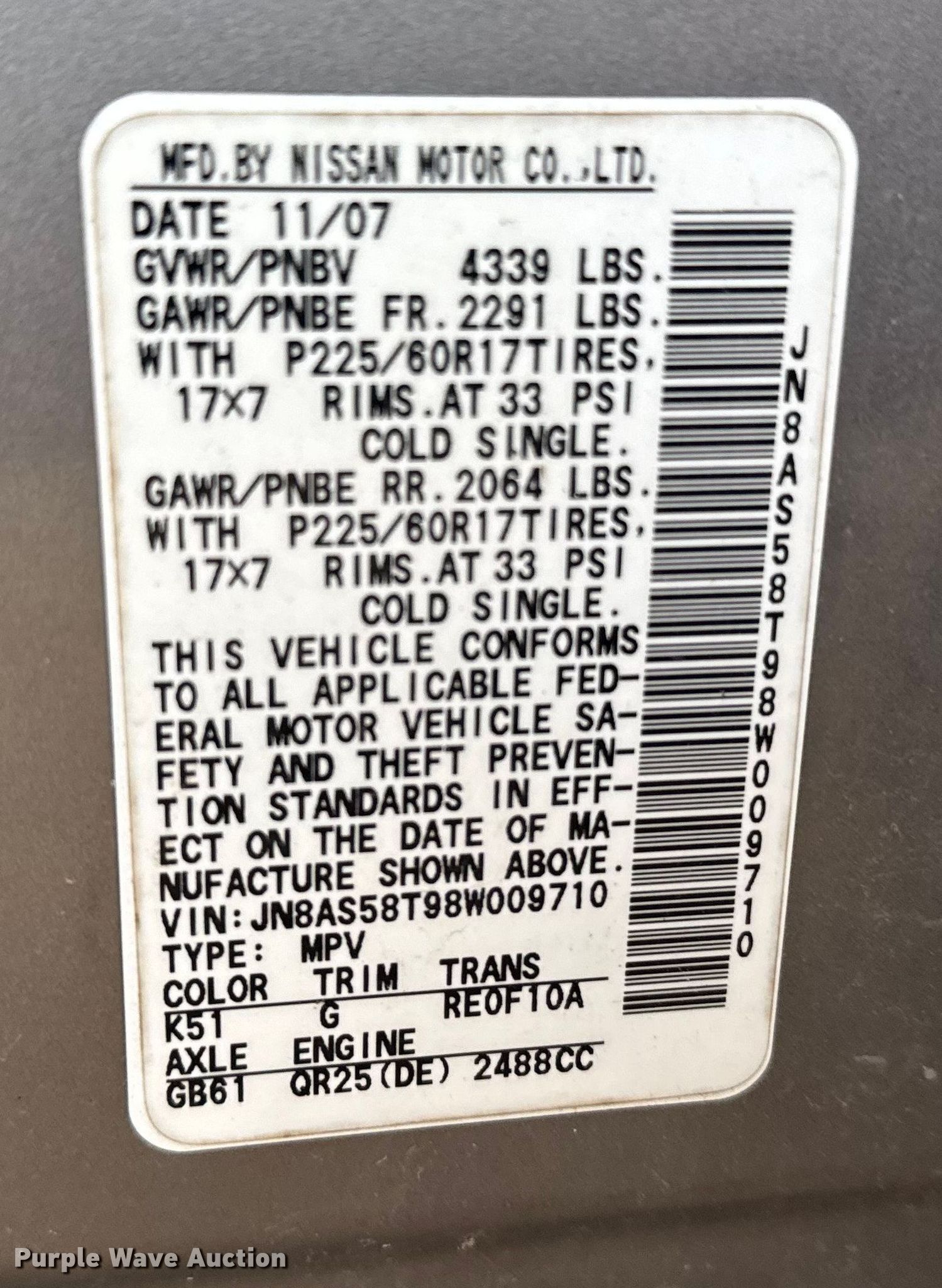 - VIN: JN8AS58T98W009710