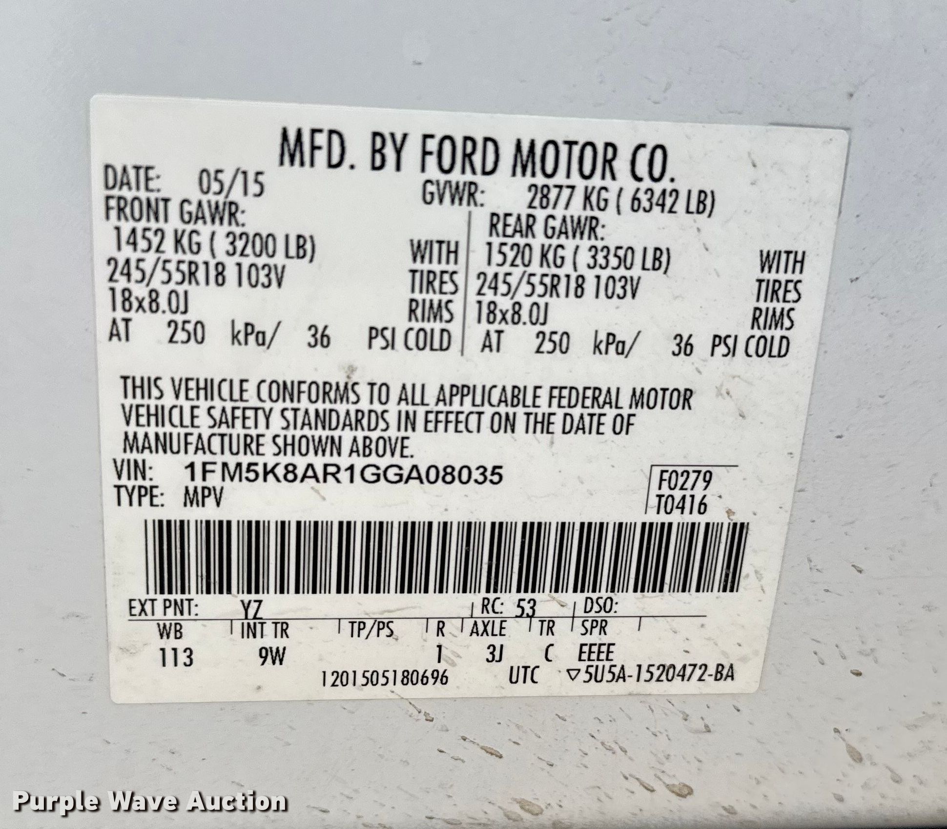 - VIN: 1FM5K8AR1GGA08035