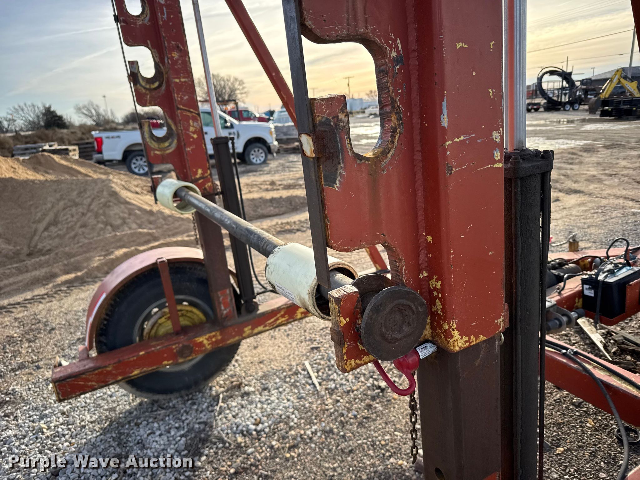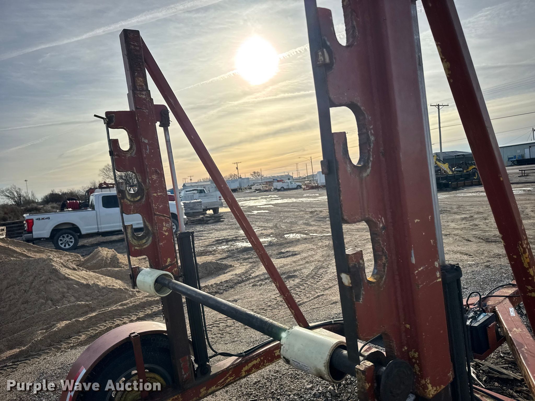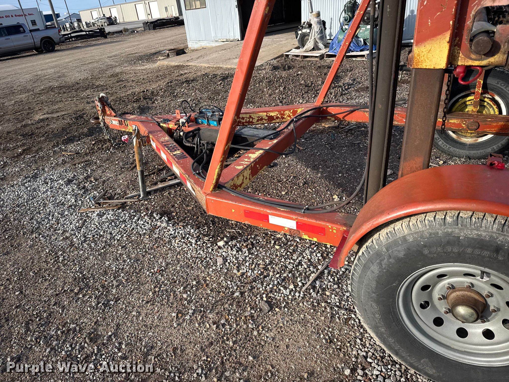 Reel trailer. Dimensions. Overall Length: 13', Width: 96". Features Reel: Single, Maximum reel width: 66", Hydraulic height adjustment, Self-contained hydraulics. Chassis Hitch: Pintle, Landing gear: Single. Tires Size: 235/85R16. This is worksite support equipment and will not come with a title. Transfer of ownership documentation will be a bill of sale. M&D of Hays, Inc. Hays, KS 67601