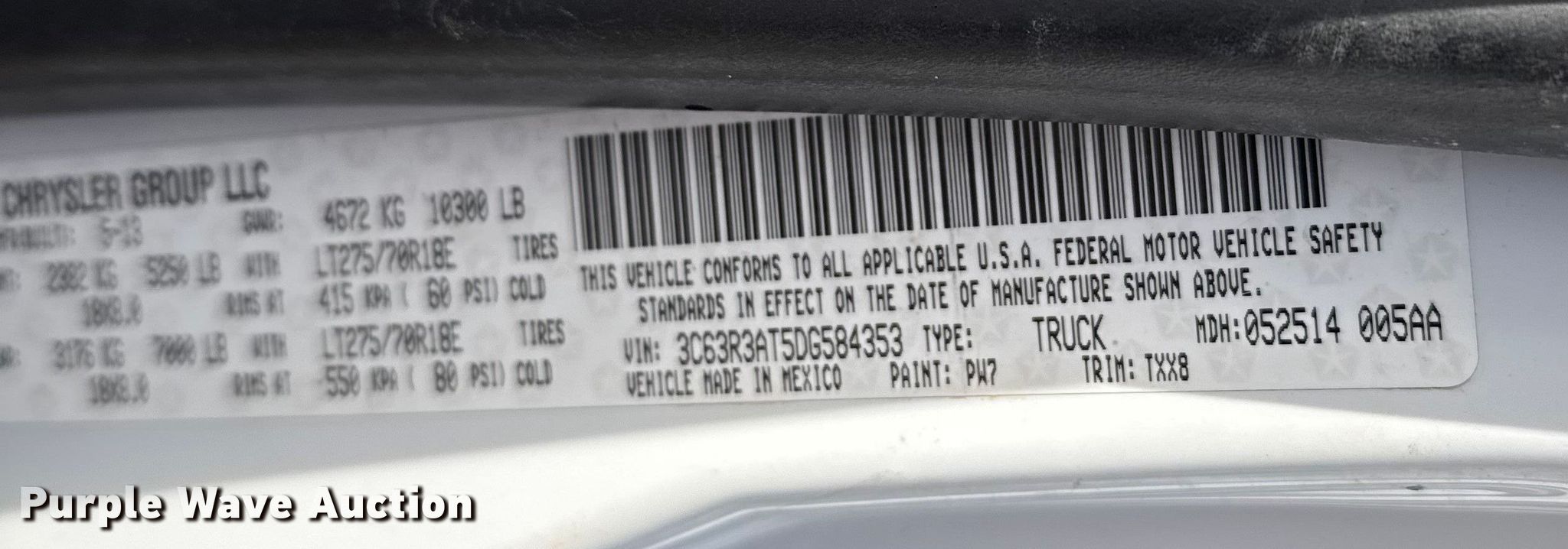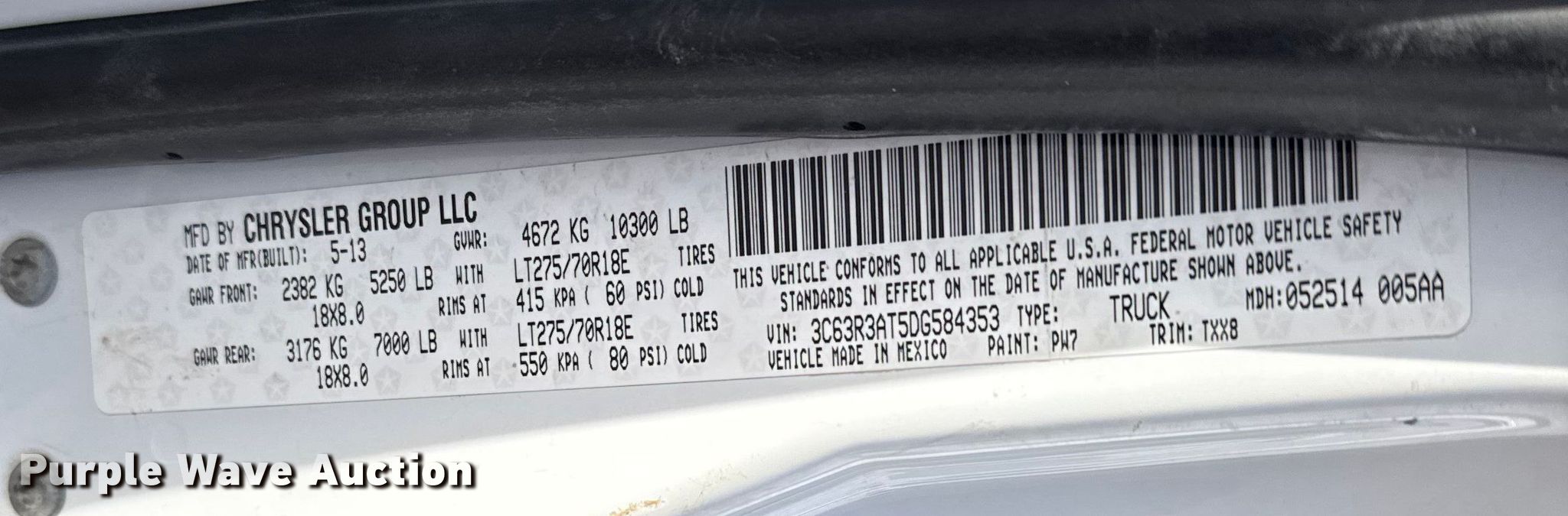 Purple Wave is selling a used 3/4 or 1 Ton Pickup or Van in Kansas. This item is a 2013 RAM 3500 utility bed pickup truck with the following: Miles: 124,474 on odometer, VIN: 3C63R3AT5DG584353