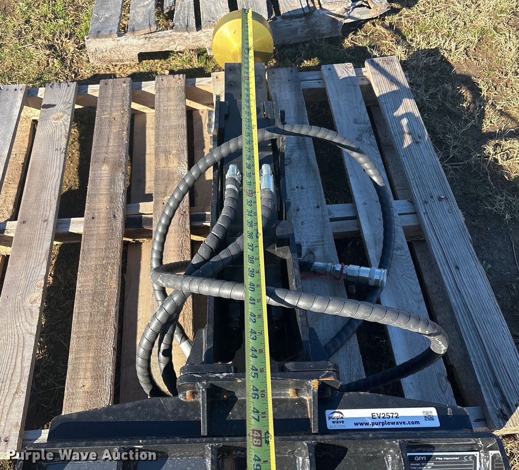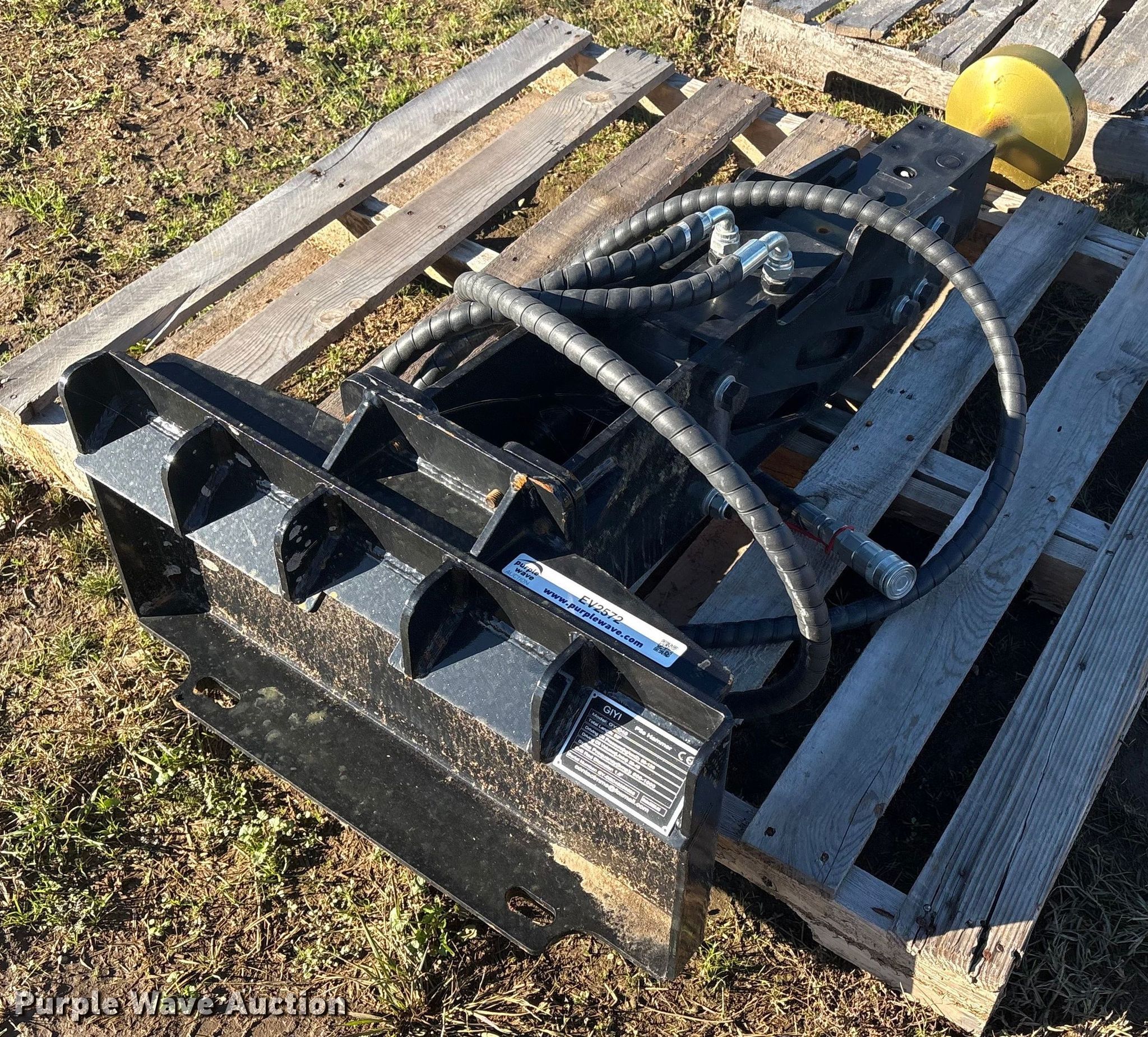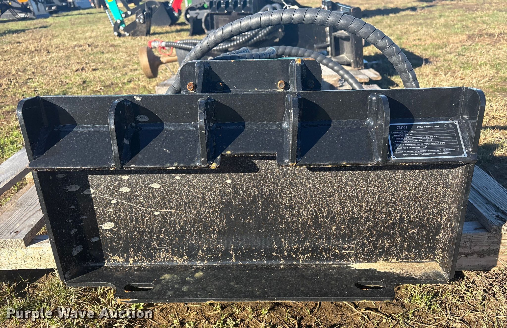 Purple Wave is selling a used Skid Steer Attach. in Oklahoma. This item is a 2025 GIYI GY-D45 compact utility loader post driver with the following: Serial: GY-DZC45250605, Head diameter: 7"